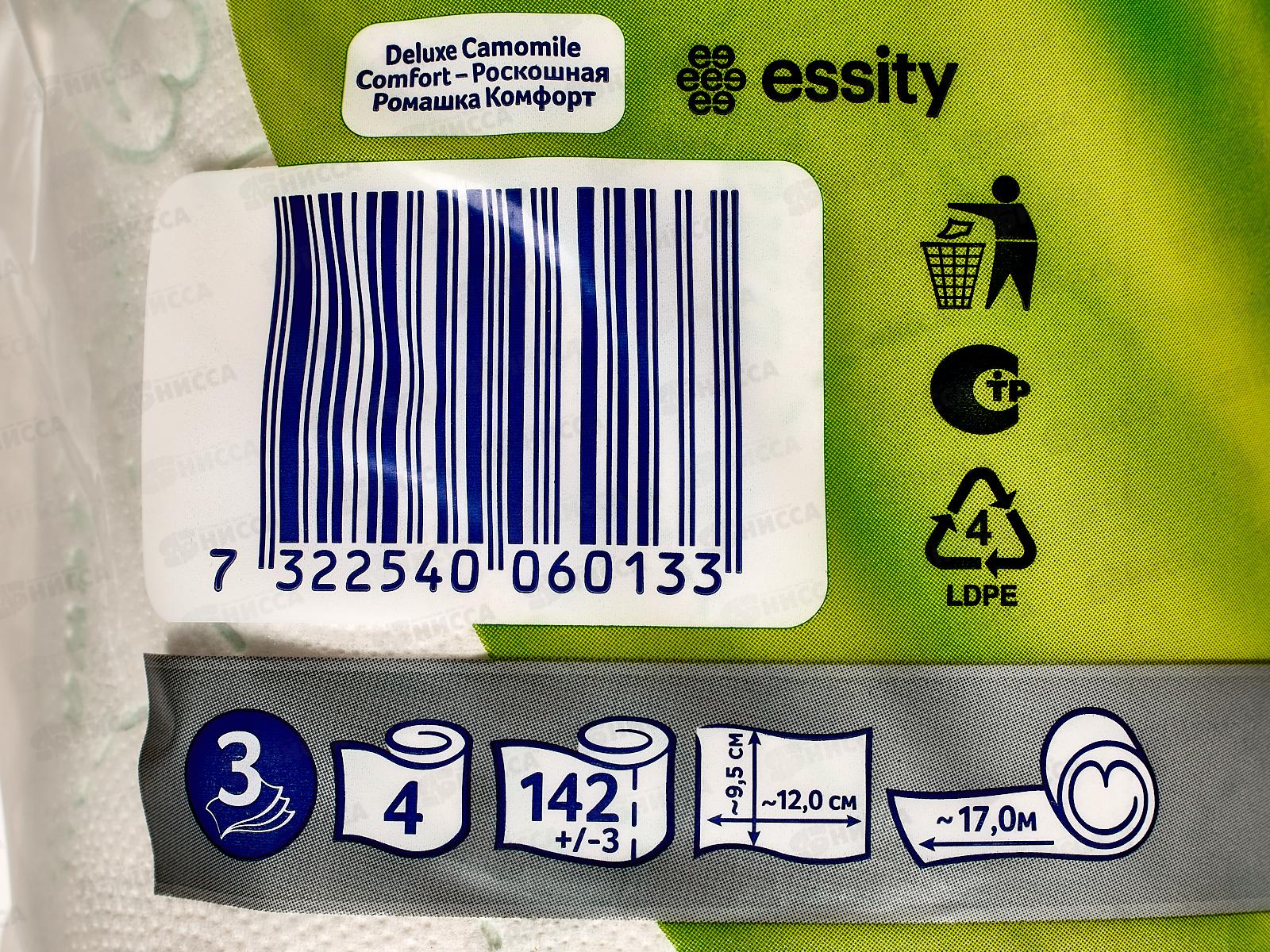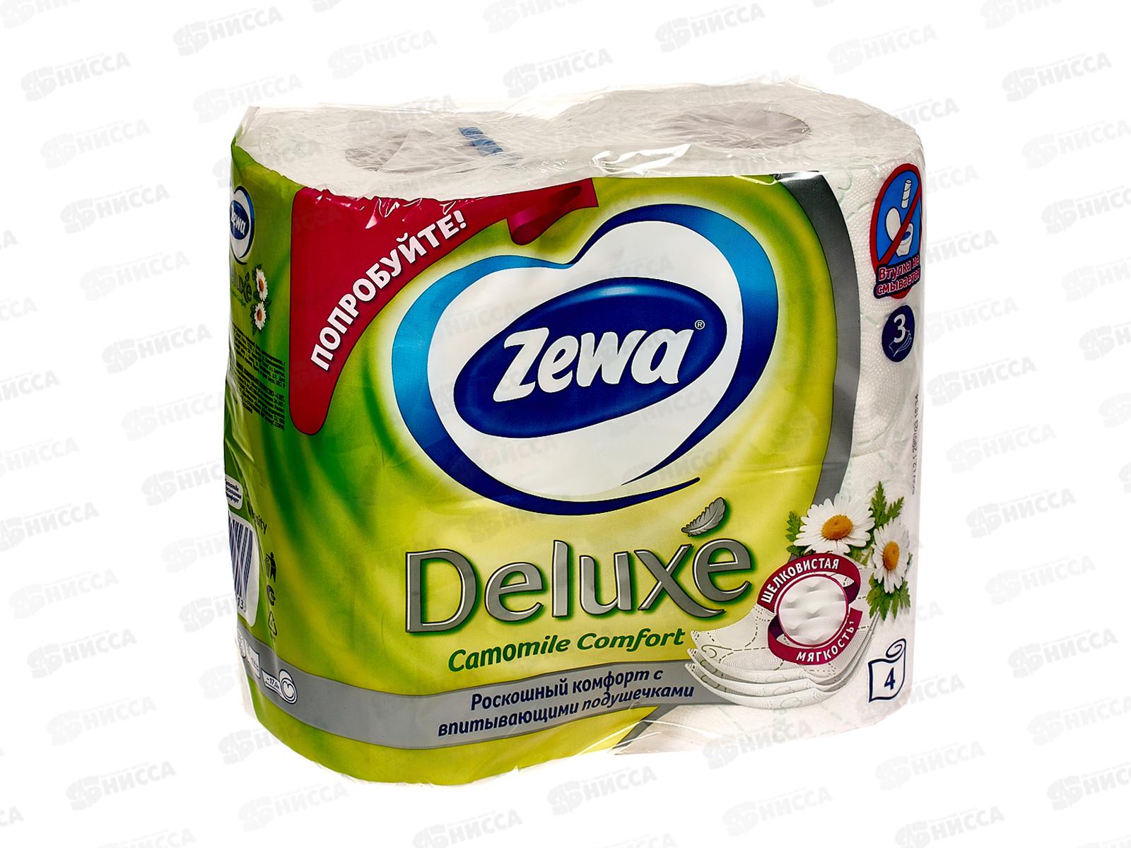 Бумага туалетная ЗЕВА Делюкс 3-х слойная ромашка 4шт *14