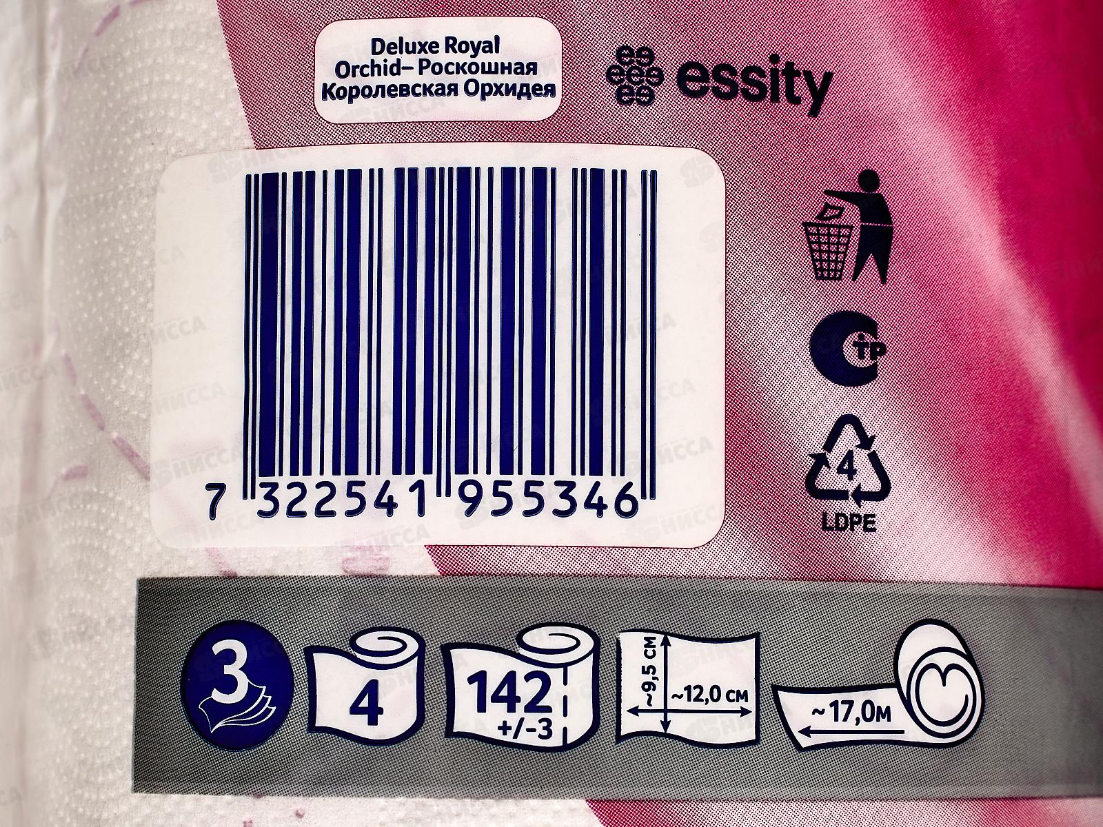 Бумага туалетная ЗЕВА Делюкс 3-х слойная Орхидея 4шт *14