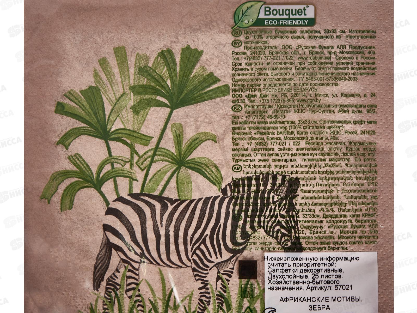 Салфетки 2 слойные 25 листов 33*33 Bouquet eco-friendly Крафт Зебра,57021*12