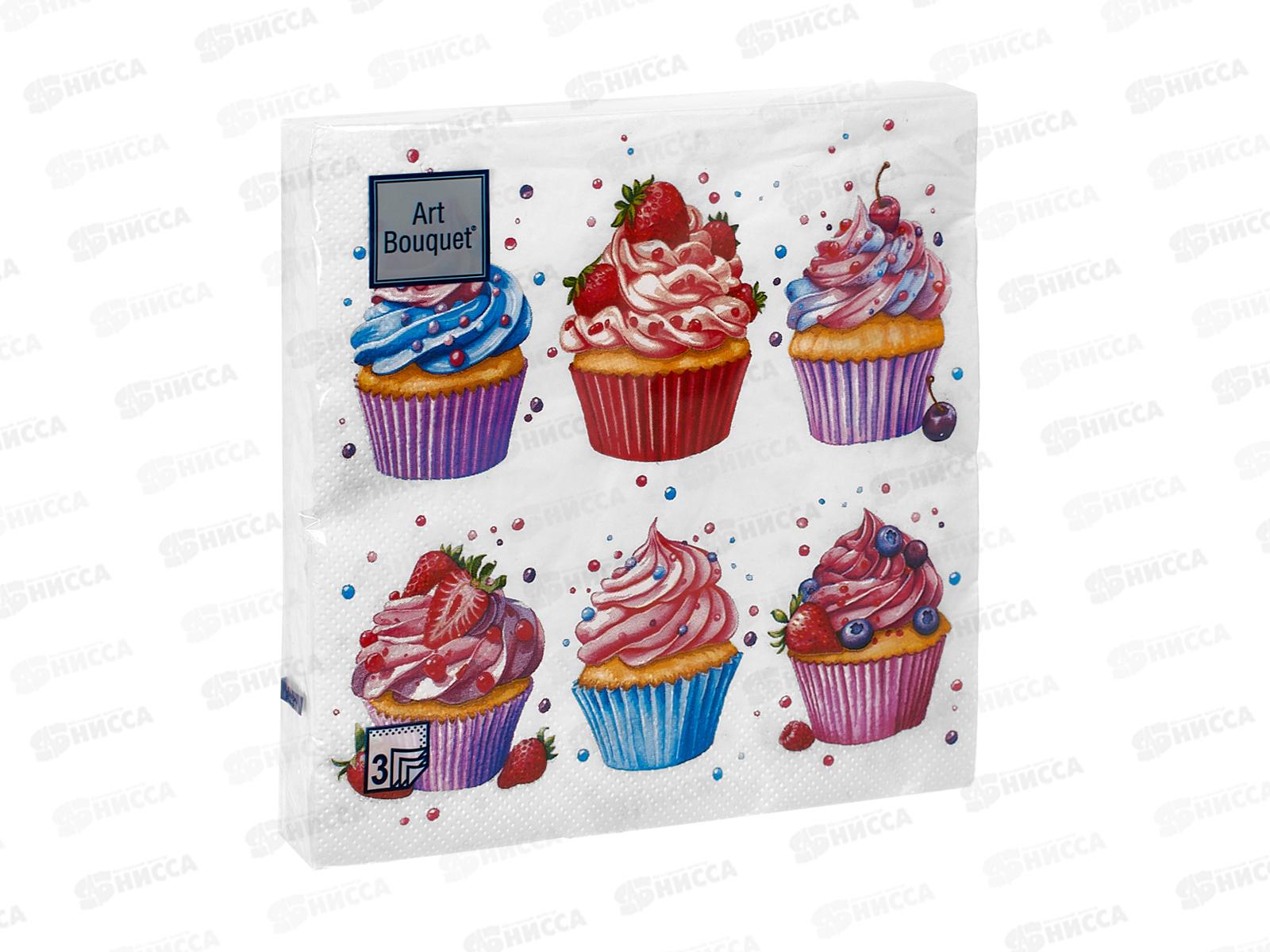 Салфетки 3 слойные 20 листов 33*33 Art Bouquet Сладкие пирожные,37346*12