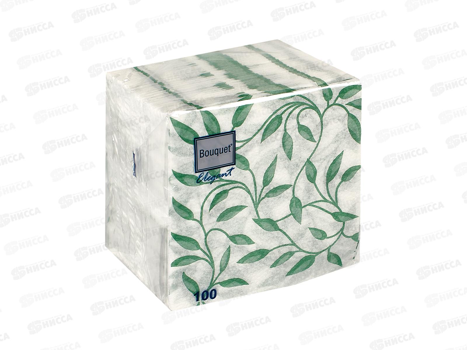Салфетки 1 слойные 100 листов 24*24 Bouguet Elegant Узоры зеленые, 57370 *16