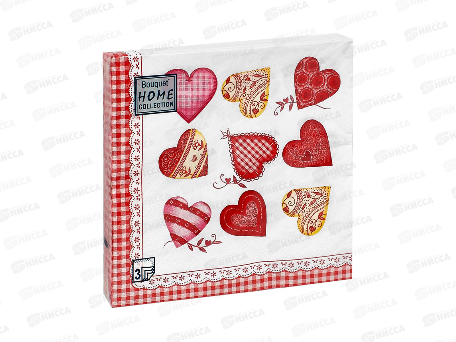 Салфетки 3 слойные 20 листов 33*33 Bouquet Home Прекрасные сердца 25325*12