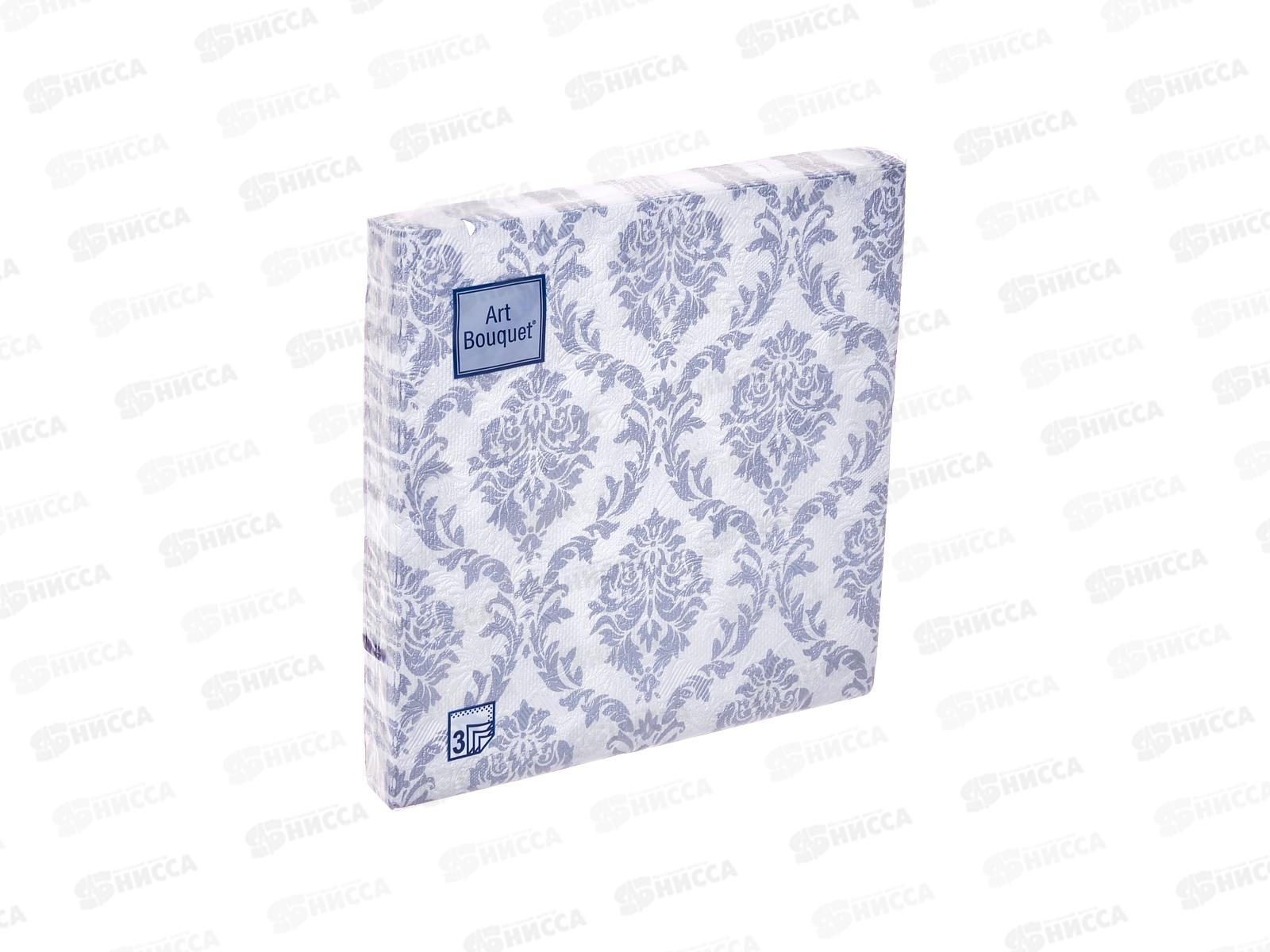 Салфетки 3 слойные 16 листов 33*33 Art Bouquet Барокко Серебро на белом 57172,*12