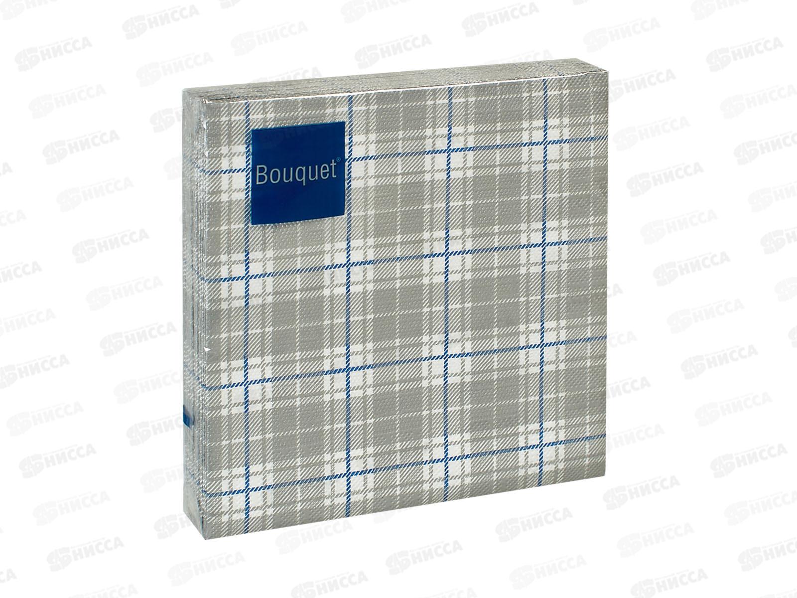 Салфетки 3 слойные 20 листов 33*33 Bouquet Клетка серебряная *12 25079