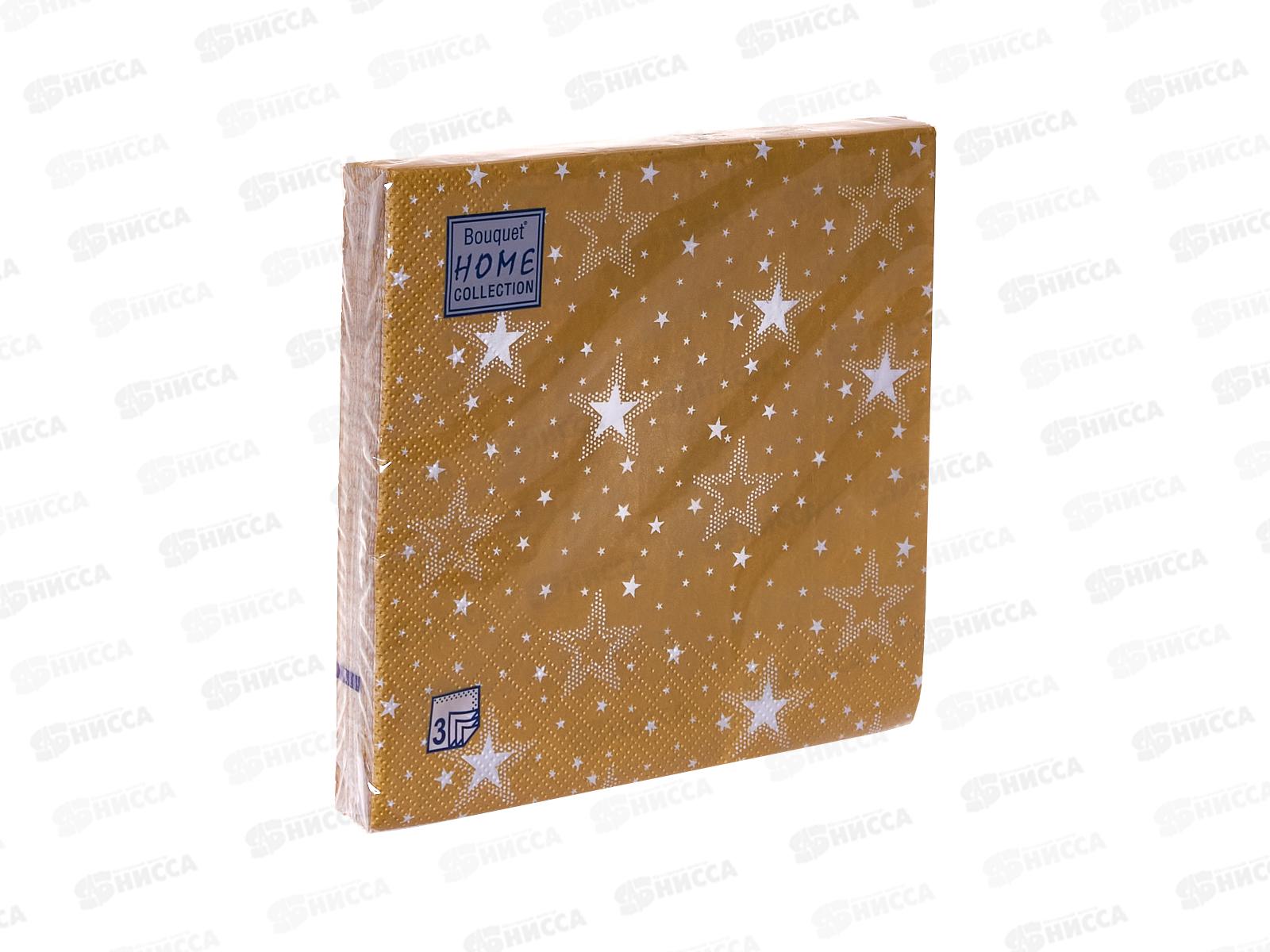 Салфетки 3 слойные 20 листов 33*33 Bouquet Home Белые звезды на золотом фоне 25140