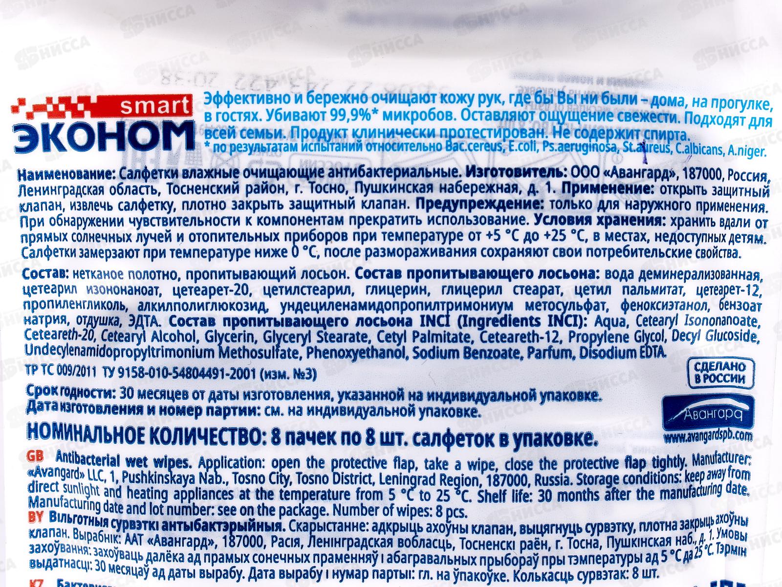 Smart салфетки влажные эконом 8*8шт антибактериальные *12 72538