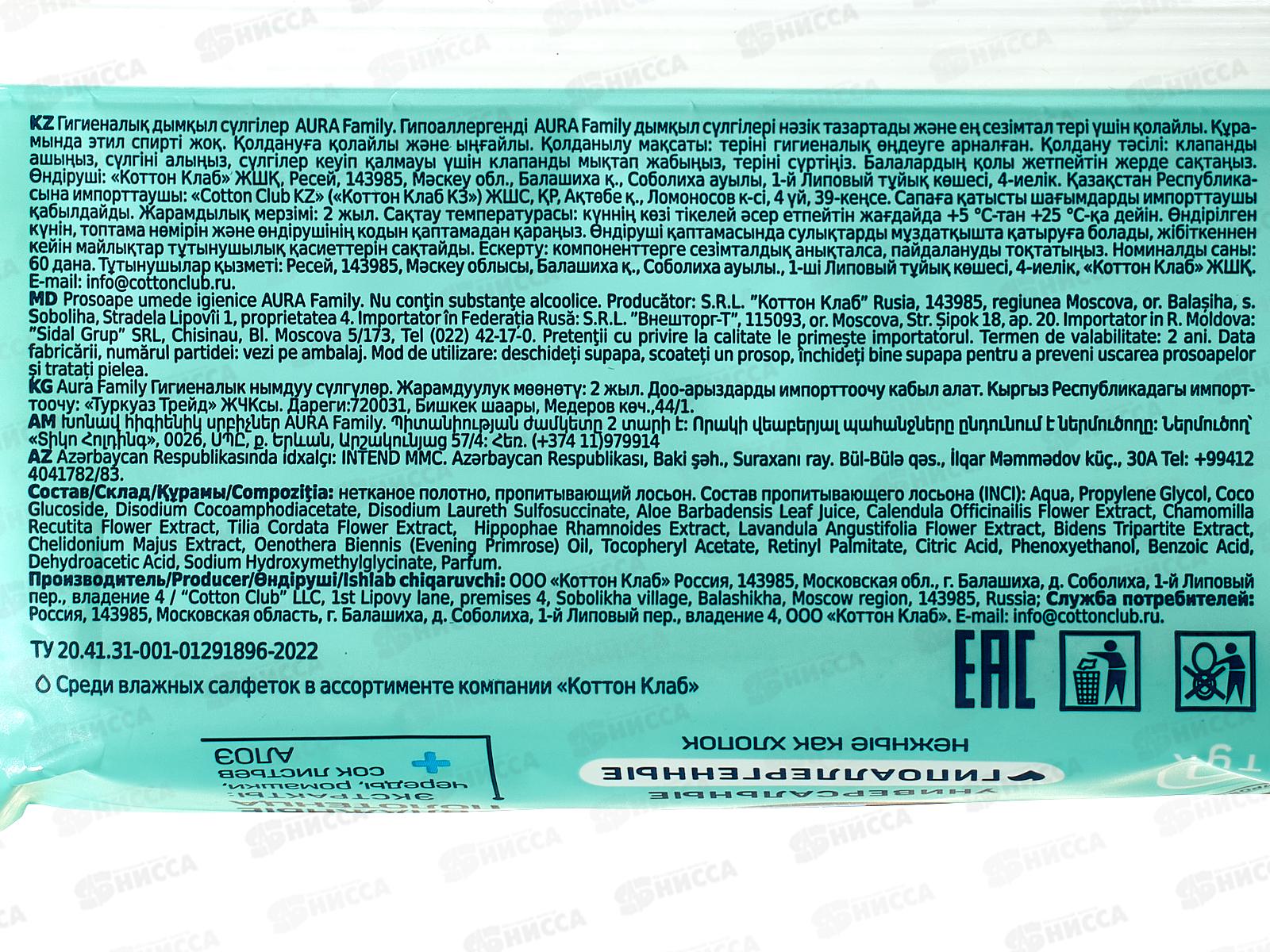АУРА Femily Влажные полотенца 60шт *10 73840