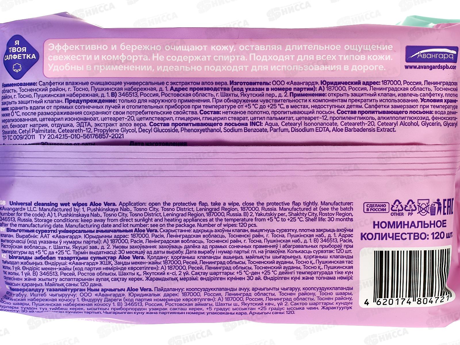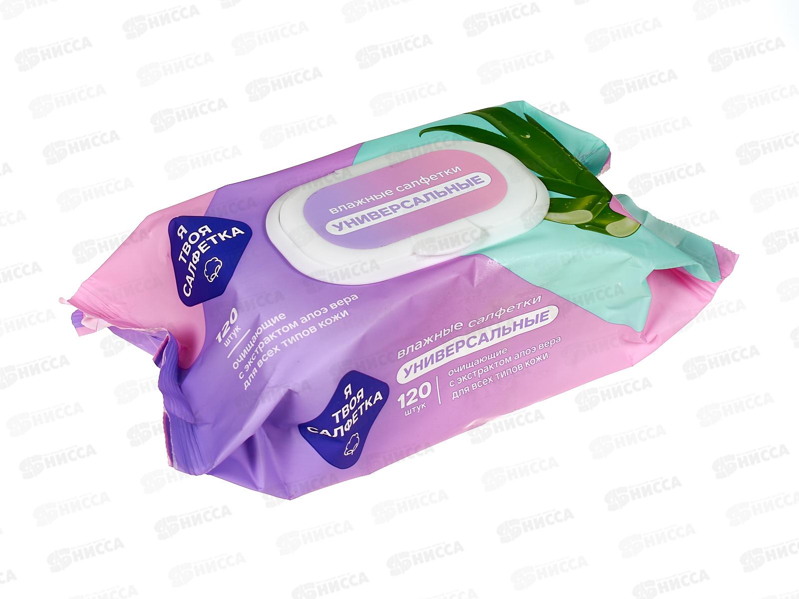Я твоя салфетка, влажные салaфетки №120 универсальные Алоэ и Вера с клапаном 80472 *16