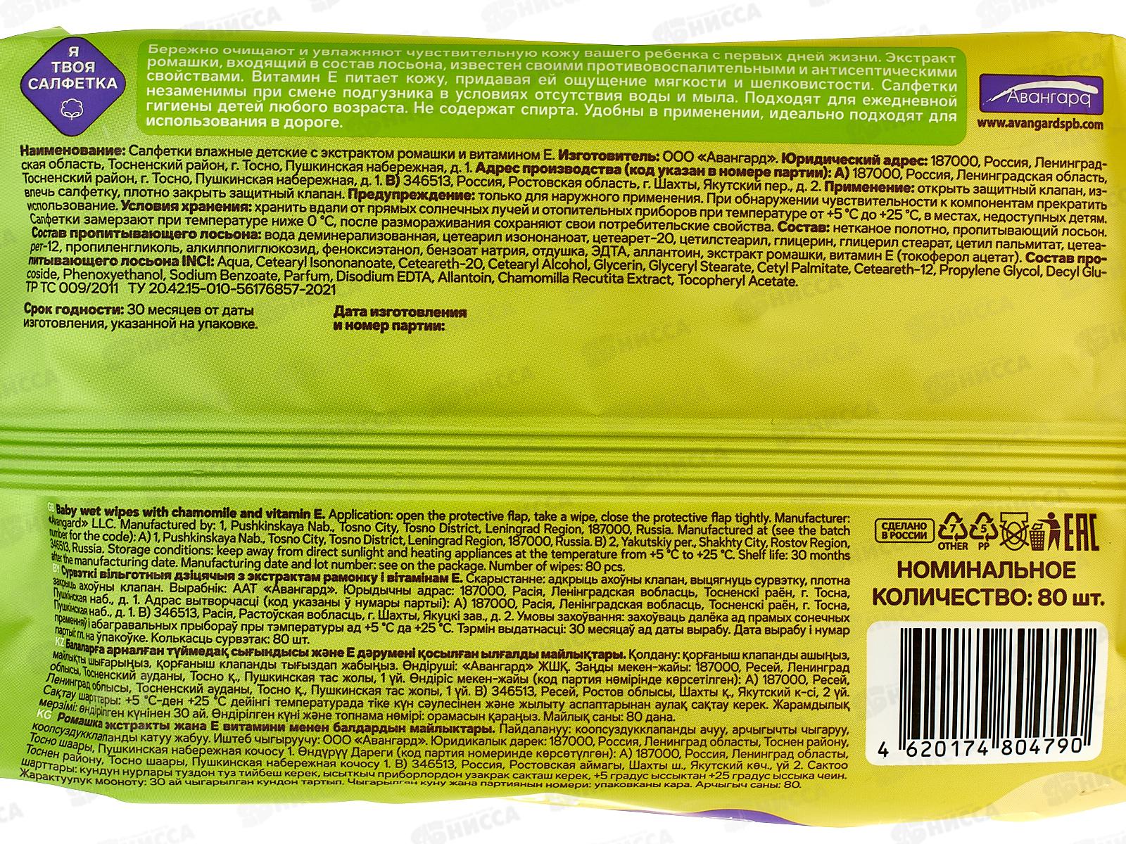Я твоя салфетка, влажные салфетки №80 детские С ромашкой и витамином с клапаном 80479 *18
