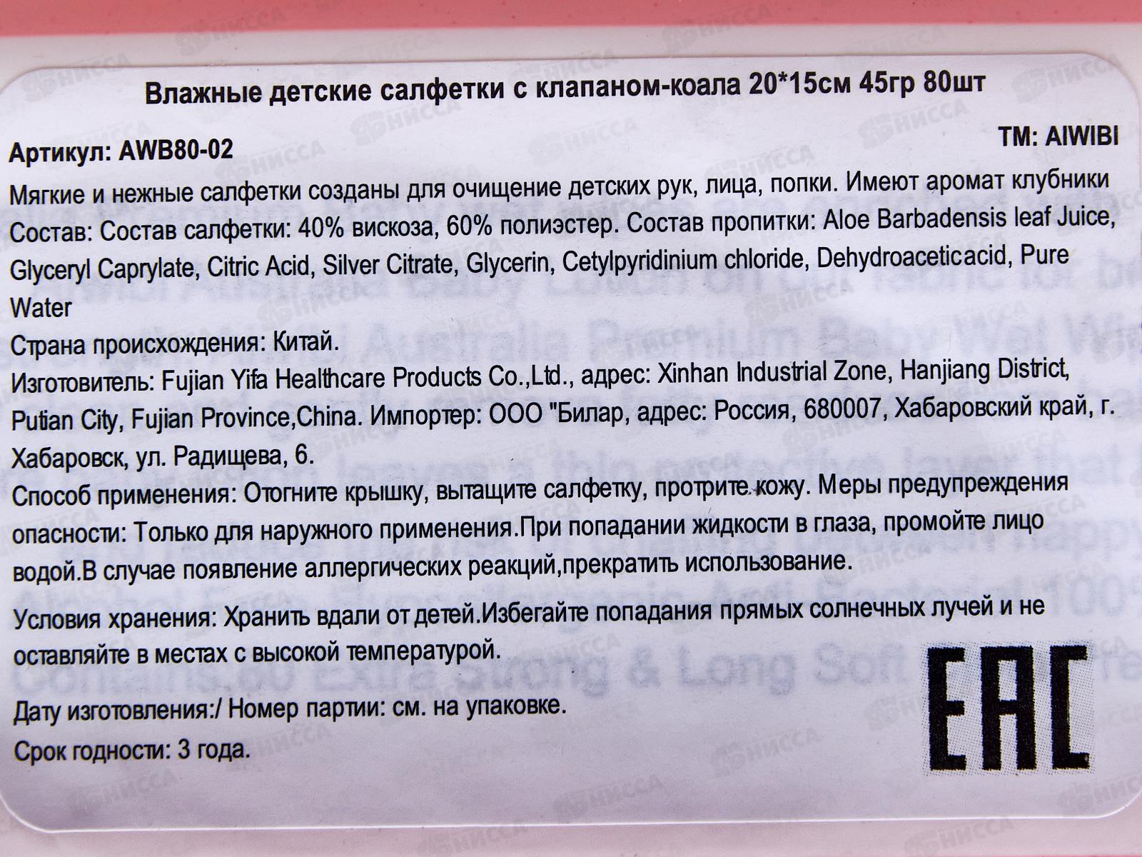 Aiwibi Влажные салфетки детские с клапаном-пандой для чувствительной кожи (0+) розовый 80 шт премиум качества созданы специально для ежедневного тщательного ухода за нежной кожей малыша. Салфетки имеют мягкую безворсовую поверхность, не липнут, не раздражают кожу, и не содержат мыльных веществ в составе. Состав: Состав салфетки: 40% вискоза, 60% полиэстер. Состав пропитки: Сок листьев алоэ Барбадосского, Глицерилкаприлат, Лимонная кислота, Цитрат серебра, Глицерин, цетилпиридинийхлорид, Дегидроуксусная кислота, Чистая вода