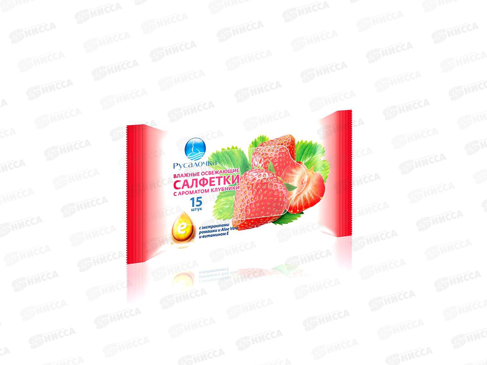 РУСАЛОЧКА влажные освежающие салфетки Клубника 15шт *48 412