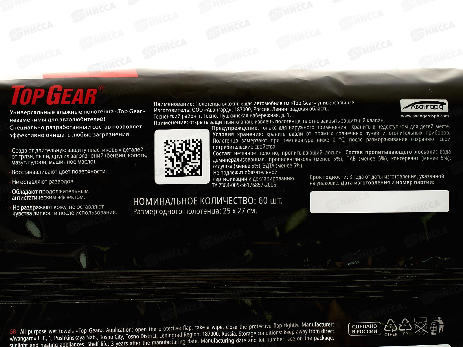 Top Gear Влажные полотенца универсальные автомобильные №60 XXL 81289