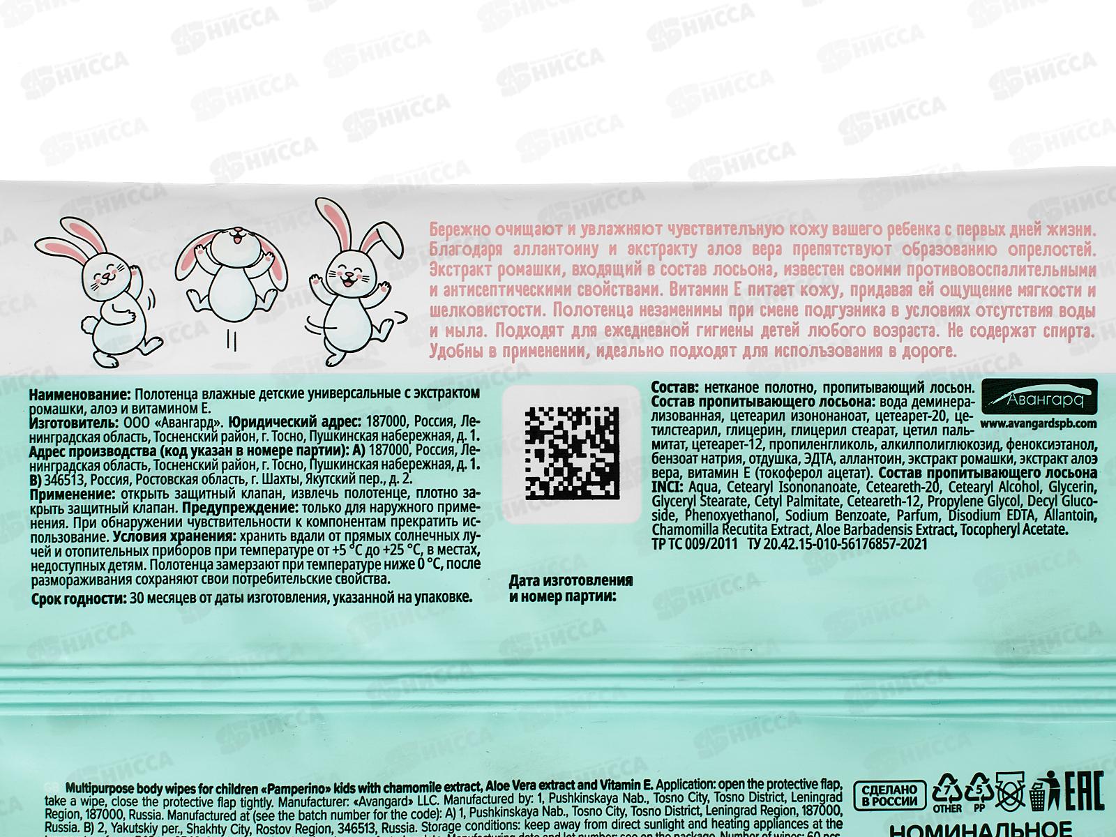 Влажные полотенца №60 детские унив с ромашкой алоэ и витам 81294 *12