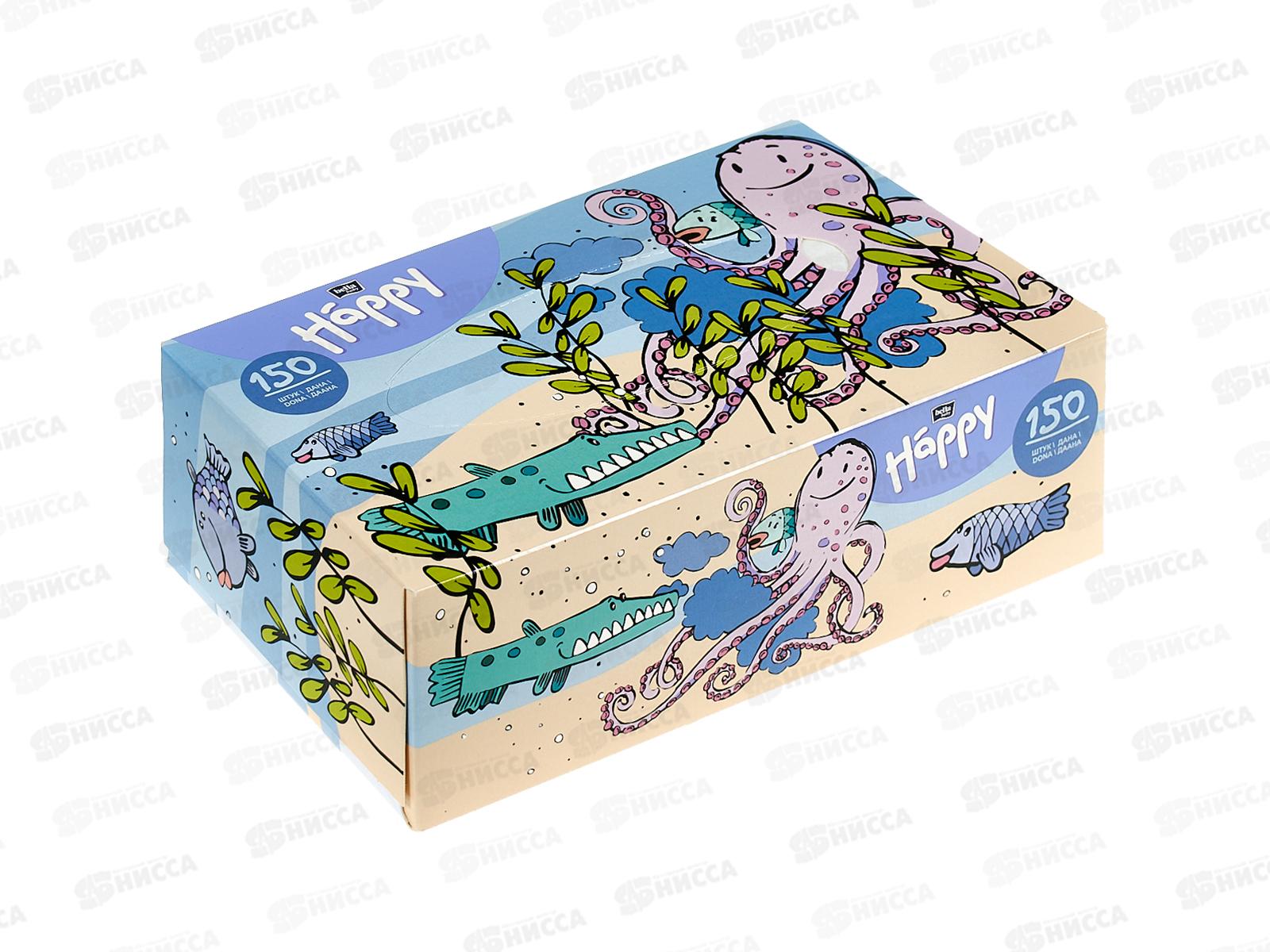 БЕЛЛА платочки нос. Универсальные Микс Happy 150шт 150-018