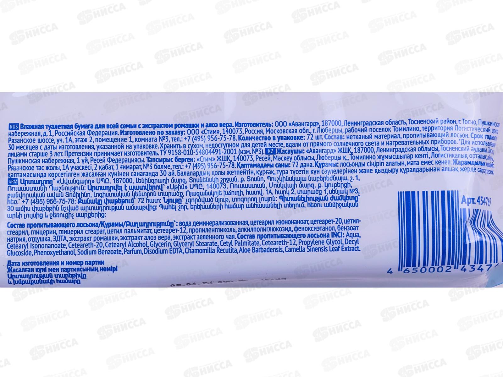 РУСАЛОЧКА влажная туалетная бумага Perfect line для все семьи 72шт *20