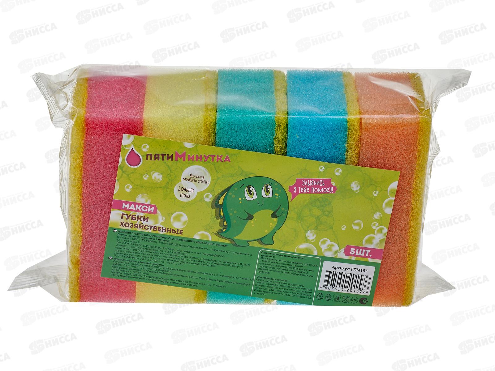 Губка для посуды Пятиминутка 5штук макси *36