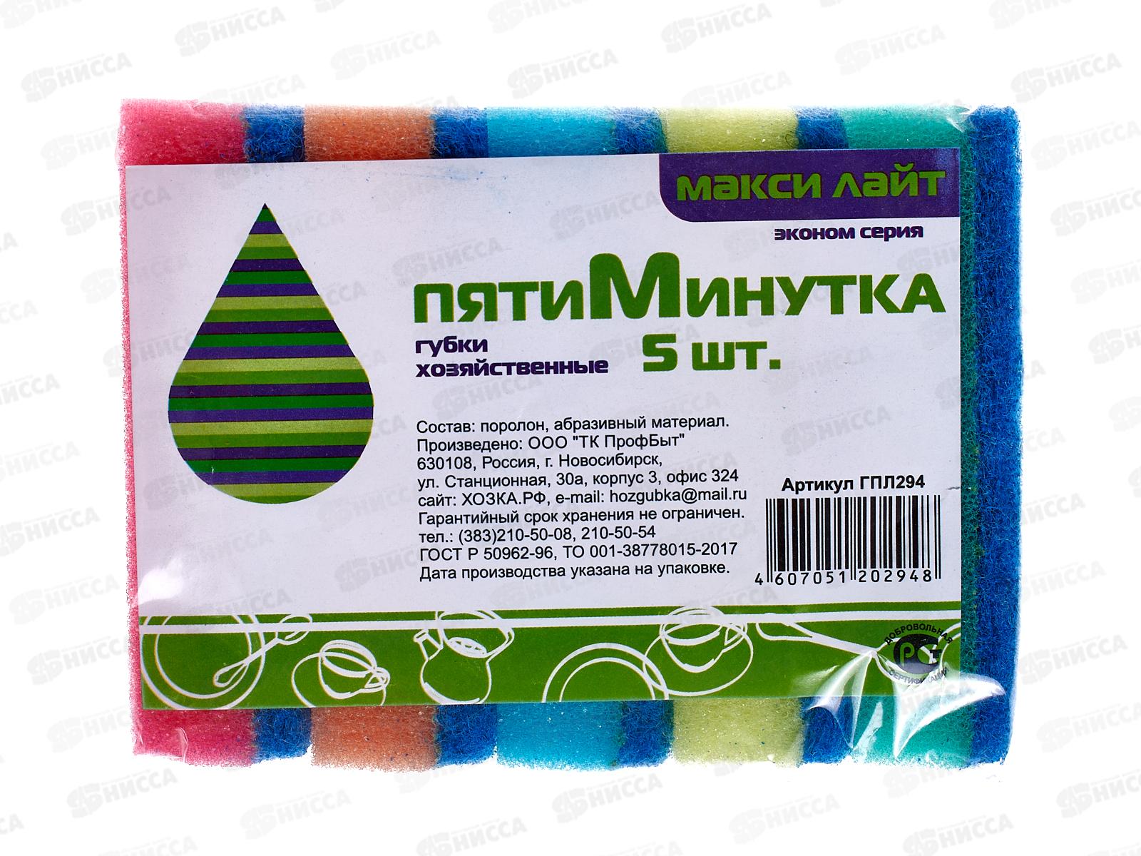 Губка для посуды Пятиминутка-5 макси Лайт *48