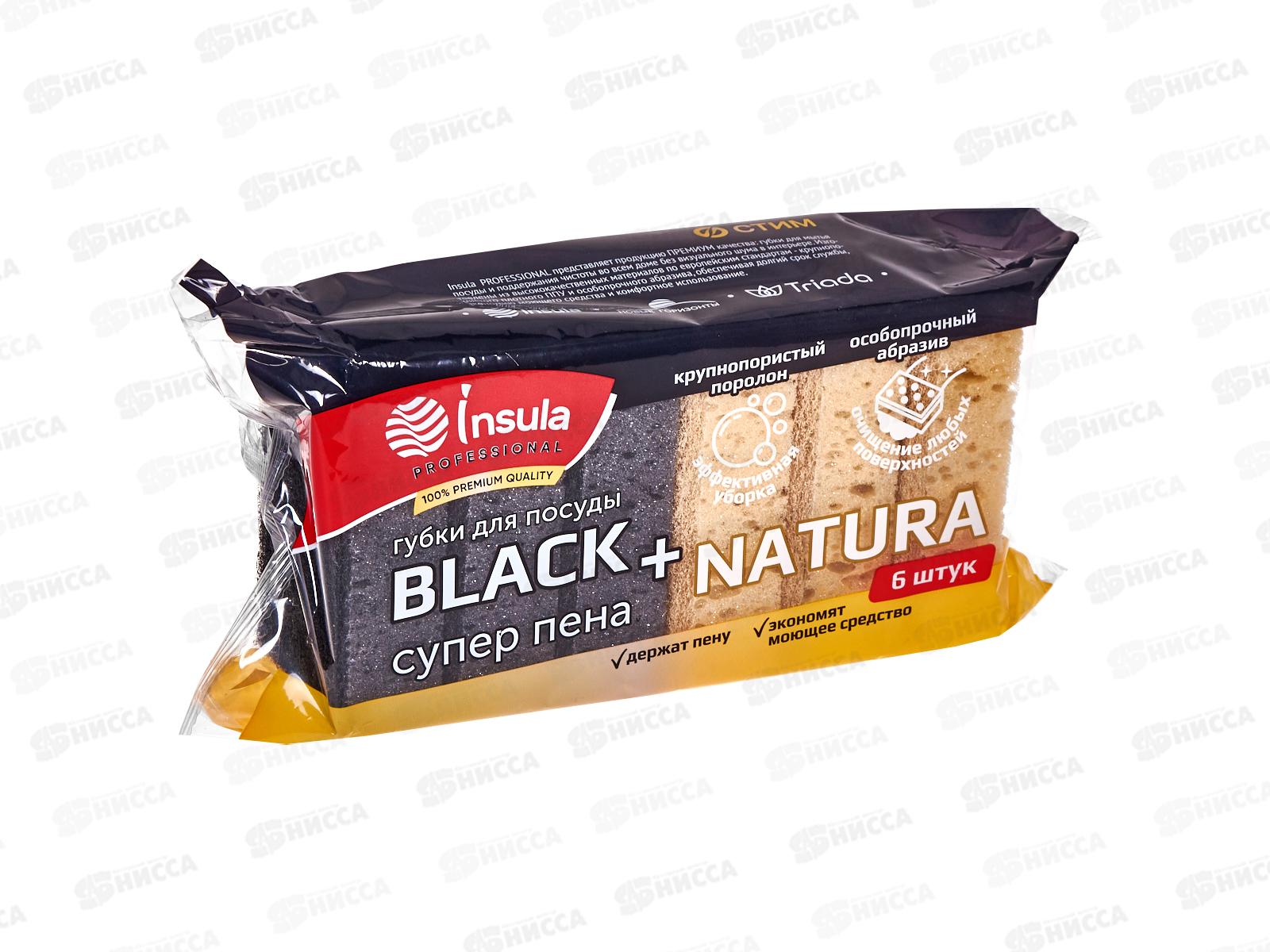 INSULA Губки д/посуды Проф супер пена Блэк+Натура 6шт *20