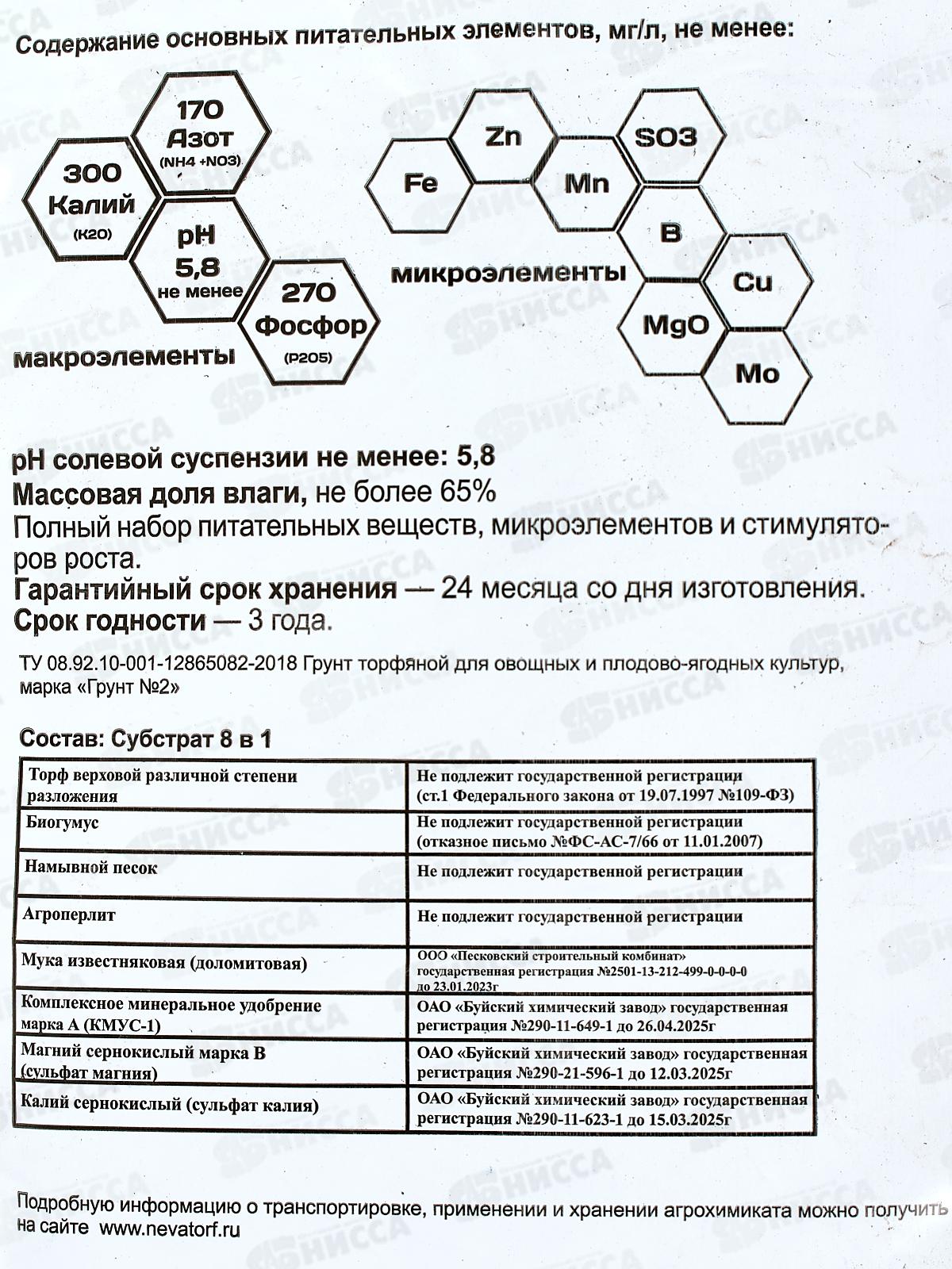 Полностью готовый питательный Торфяной грунт для выращивания рассады. Торфогрунт изготовлен из смеси высококачественных верховых Торфов различной степени разложения с добавлением природных структурирующих компонентов (очищенного речного песка и агроперлита), биогумуса и комплексного минерального удобрения. В грунт добавлен агроперлит (белые инертные гранулы) для улучшения воздухо- и влагообмена. Биогумус служит естественным стимулятором роста растений.