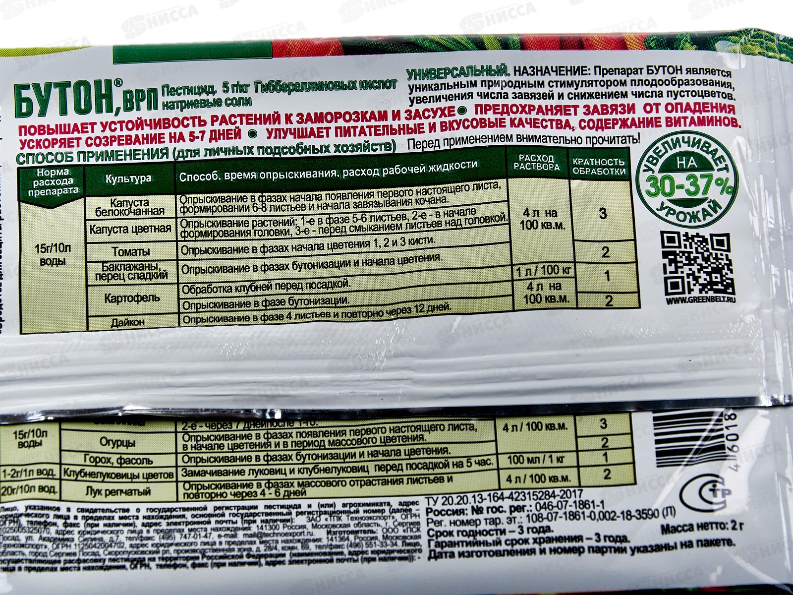 Green Belt Бутон – уникальный природный стимулятор плодообразования на основе гиббереллиновых кислот и натриевых солей. Применяется в качестве внекорневой подкормки для всех овощных и плодово-ягодных культур. Препарат увеличивает урожай на 30-37% и ускоряет созревание на 5-7 дней, улучшает питательные и вкусовые качества, содержание витаминов, предохраняет завязи от опадения, повышает устойчивость растений к заморозкам и засухе.