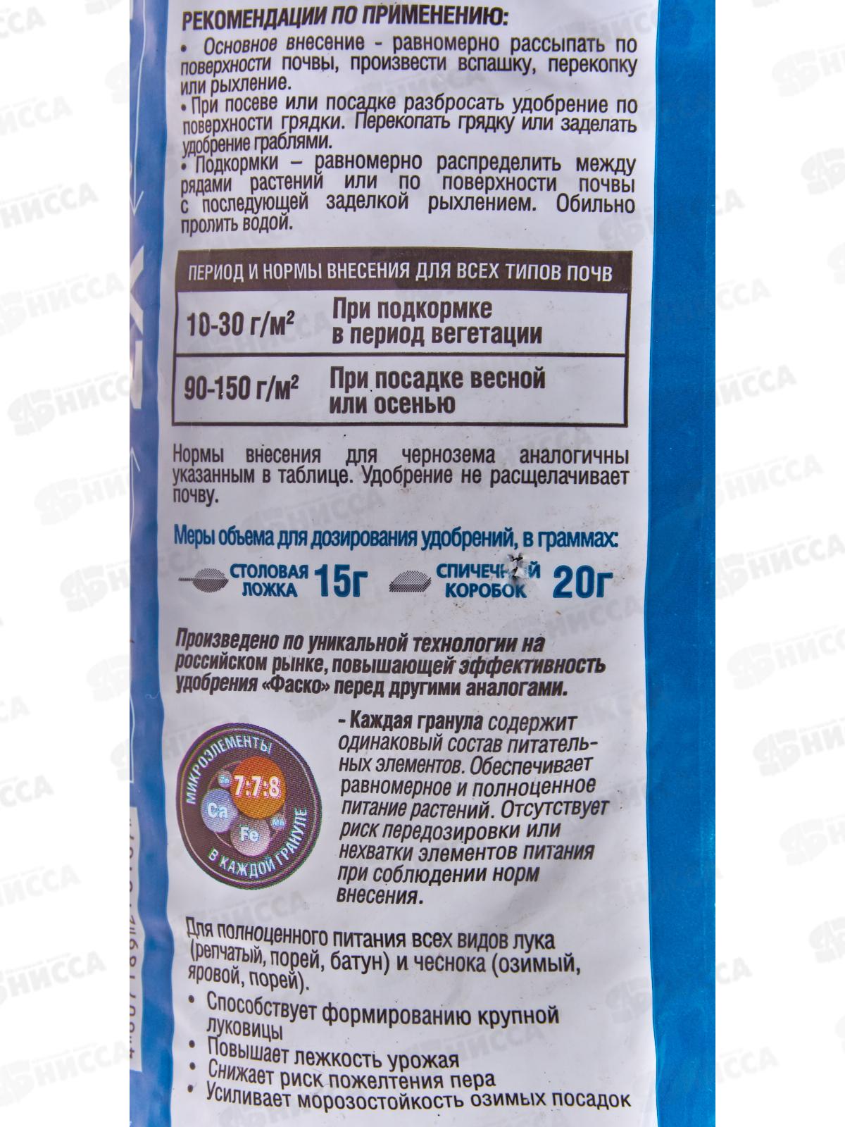 Компоненты: азот 7%, фосфор 7%, калий 8%, микроминералы