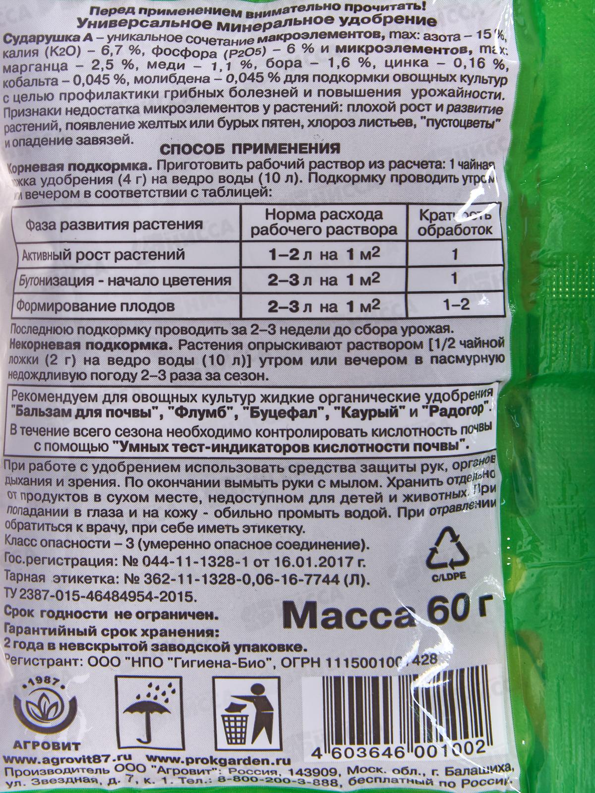 СУДАРУШКА универсальное удобрение для огорода 60г *1/120