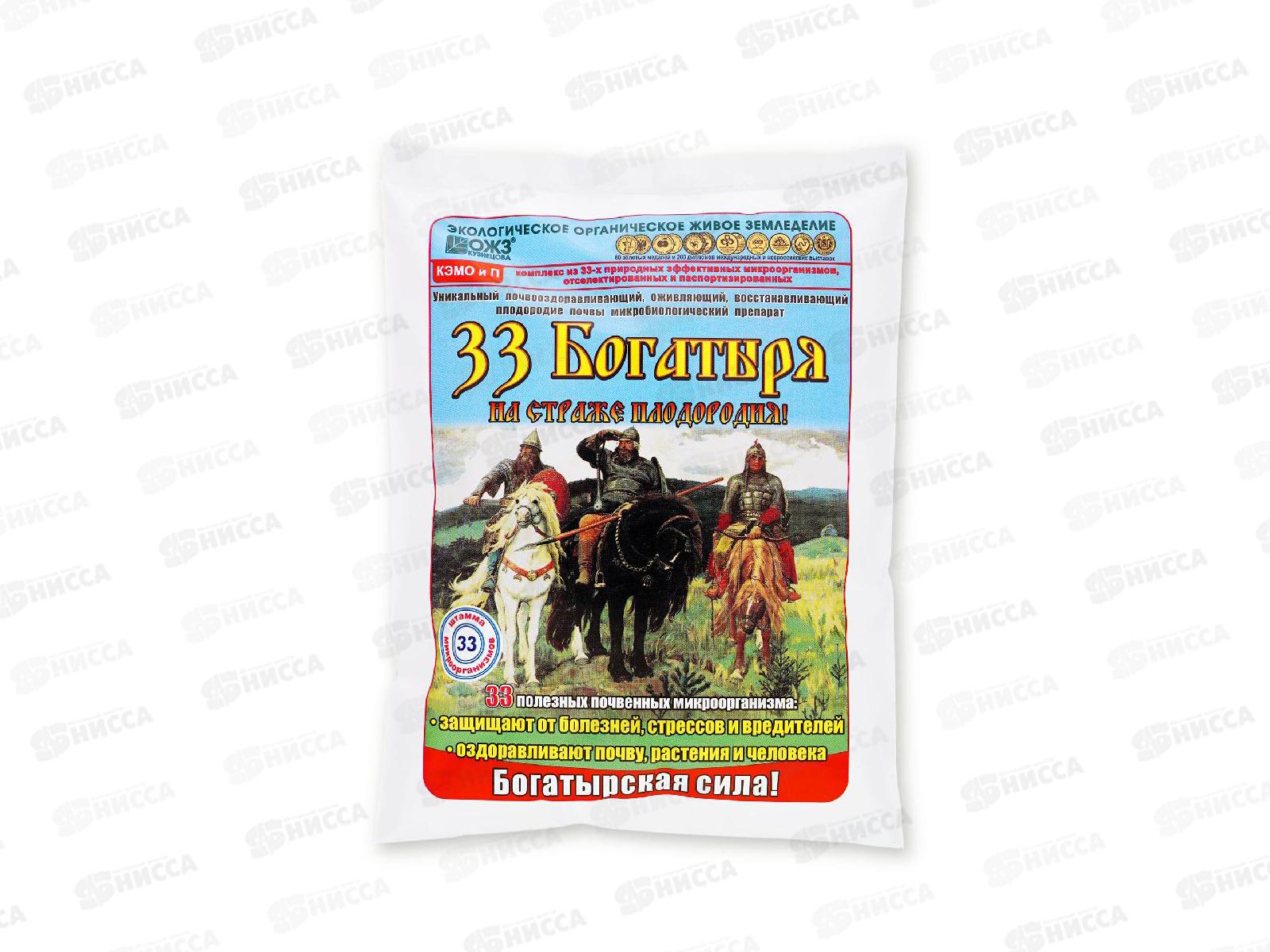 33 Богатыря – почвооздоравливающий микробиологический препарат, содержит в составе важные 33 штамма почвенных организмов. Применяется для выращивания всех видов культур и для всех видов почв. Препарат повышает урожайность и качество продукции, стимулирует рост и развитие растений, восстанавливает плодородие и содействует улучшению структуры почвы, защищает иммунитет от различных заболеваний, синтезирует нужные растениям аминокислоты, витамины, биостимуляторы.