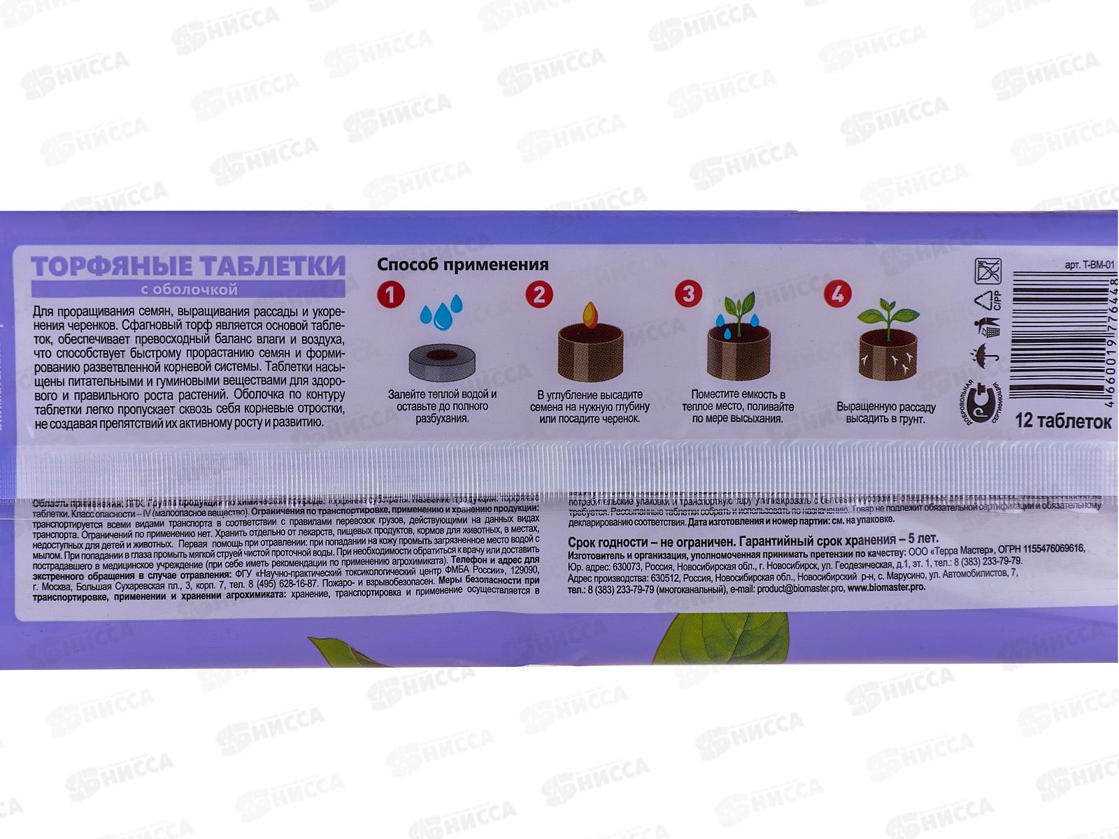 Торфяная таблетка 42мм, с оболочкой 12шт БИО МАСТЕР *40
