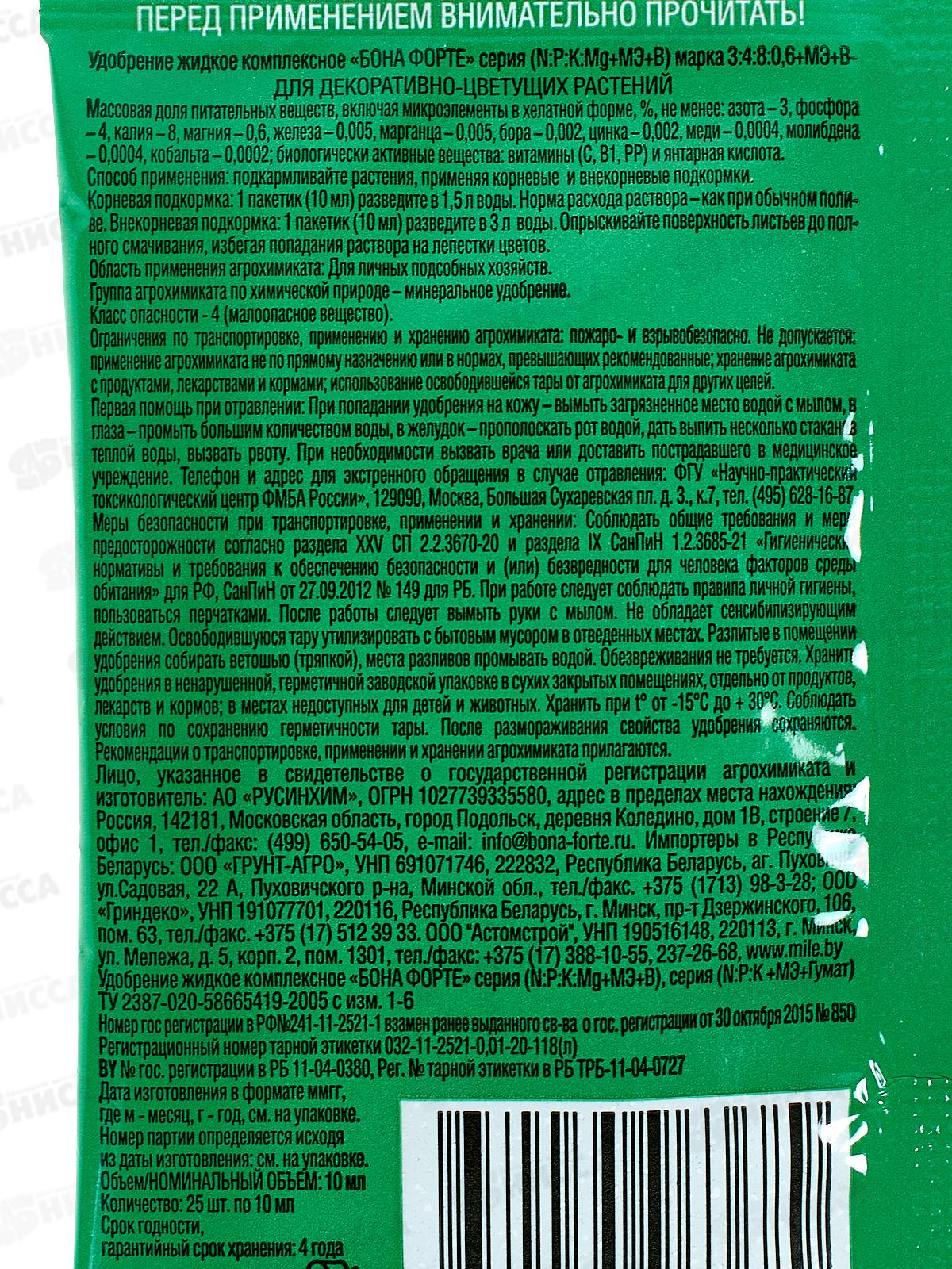 Bona Forte Красота жидкое минеральное удобрение для луковичных пакет 10мл *25