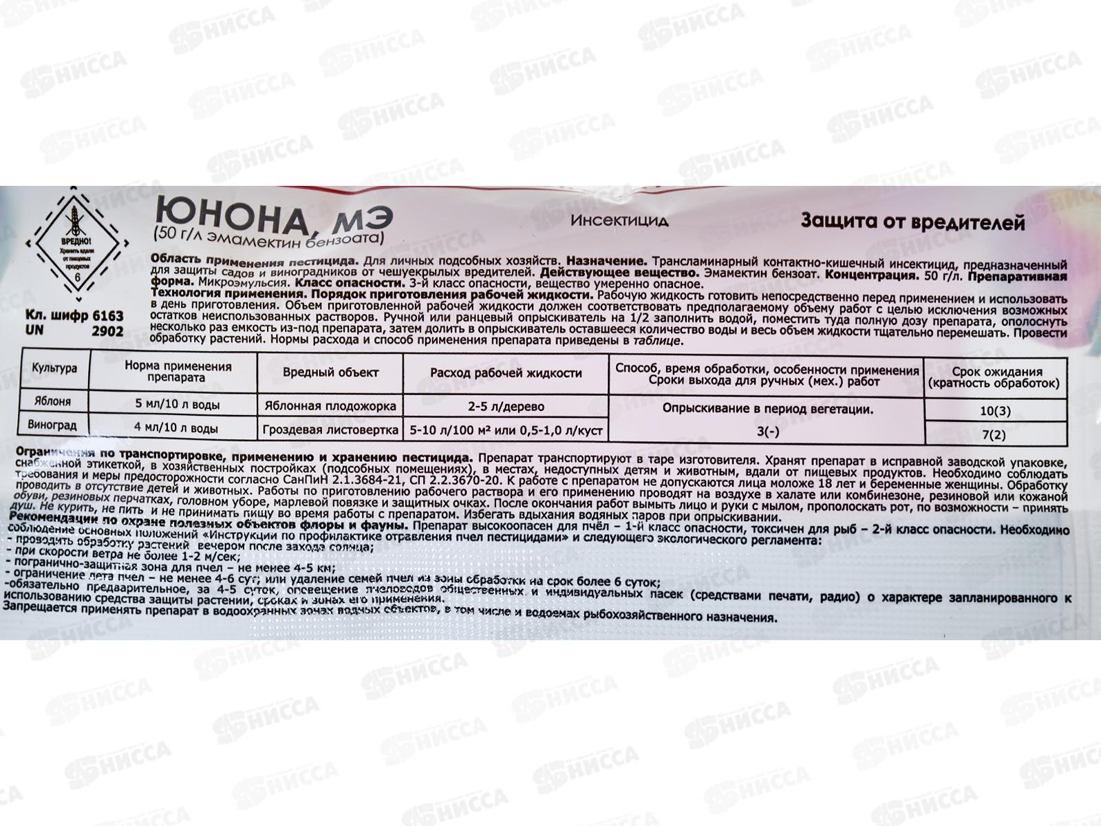 Юнона МЭ защита от вредителей (яблоня, виноград) 5мл ампула *40 применяют апрель-июль