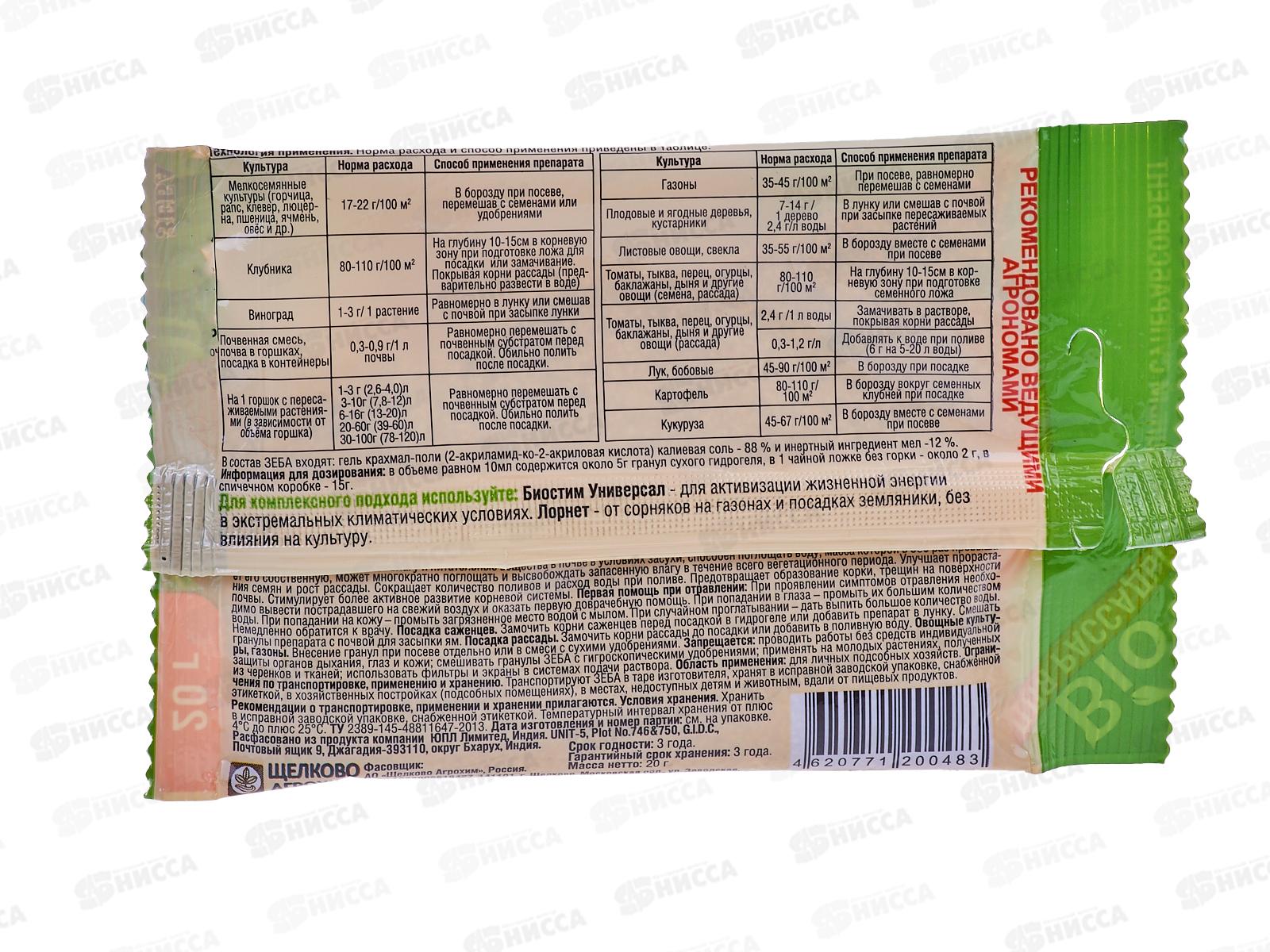 Зеба почвоулучшитель-суперабсорбент 20г