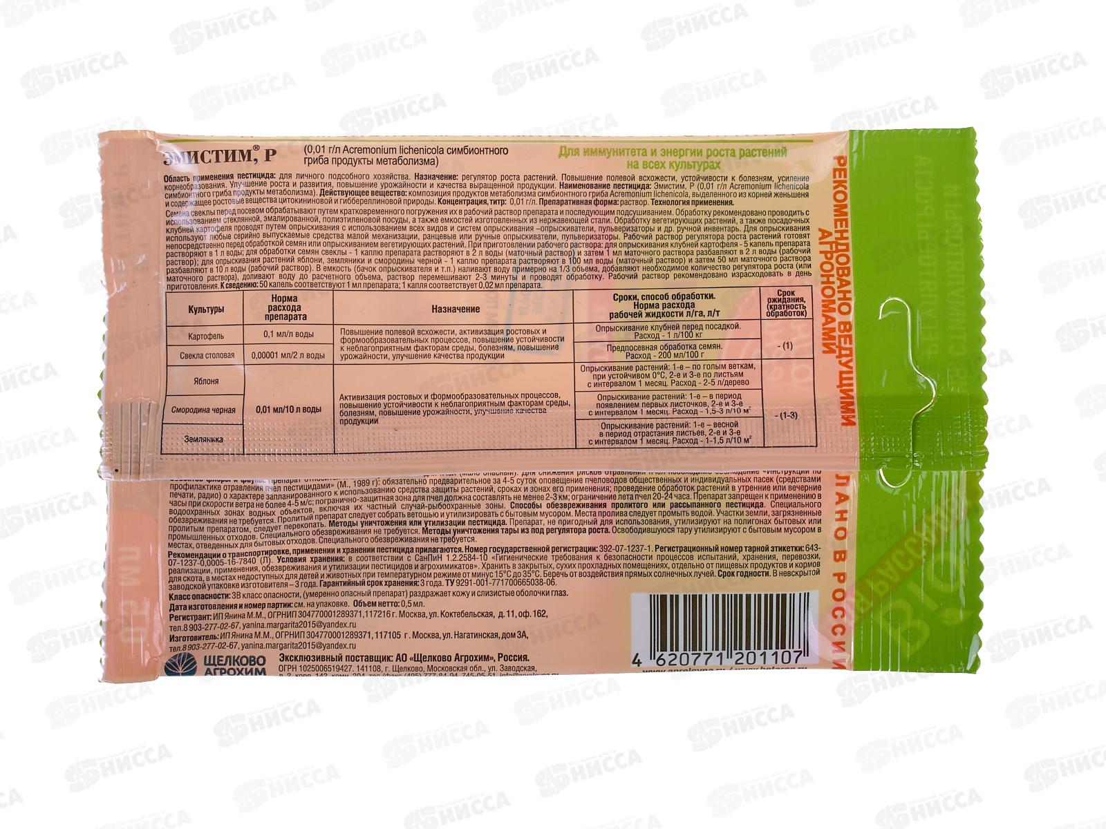 Эмистим Р регулятор роста растений для всех видов культур ампула 0,5мл