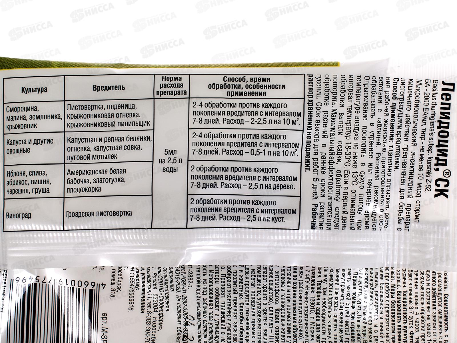 Действующее вещество: споро-кристаллический комплекс Bacillus thuringiensis subsp. kurstaki Z-52