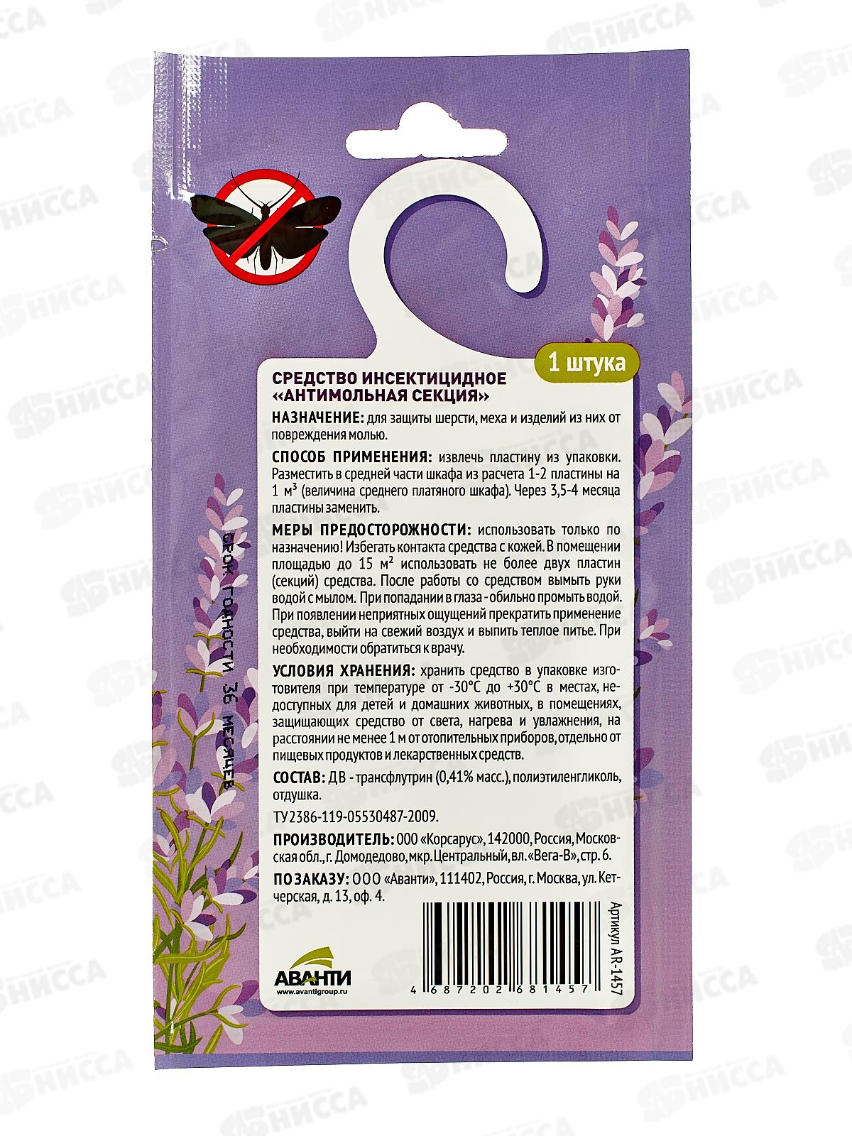 АРГУС Антимольная секция защита от моли до 4 месяцев с запахом лаванды *50