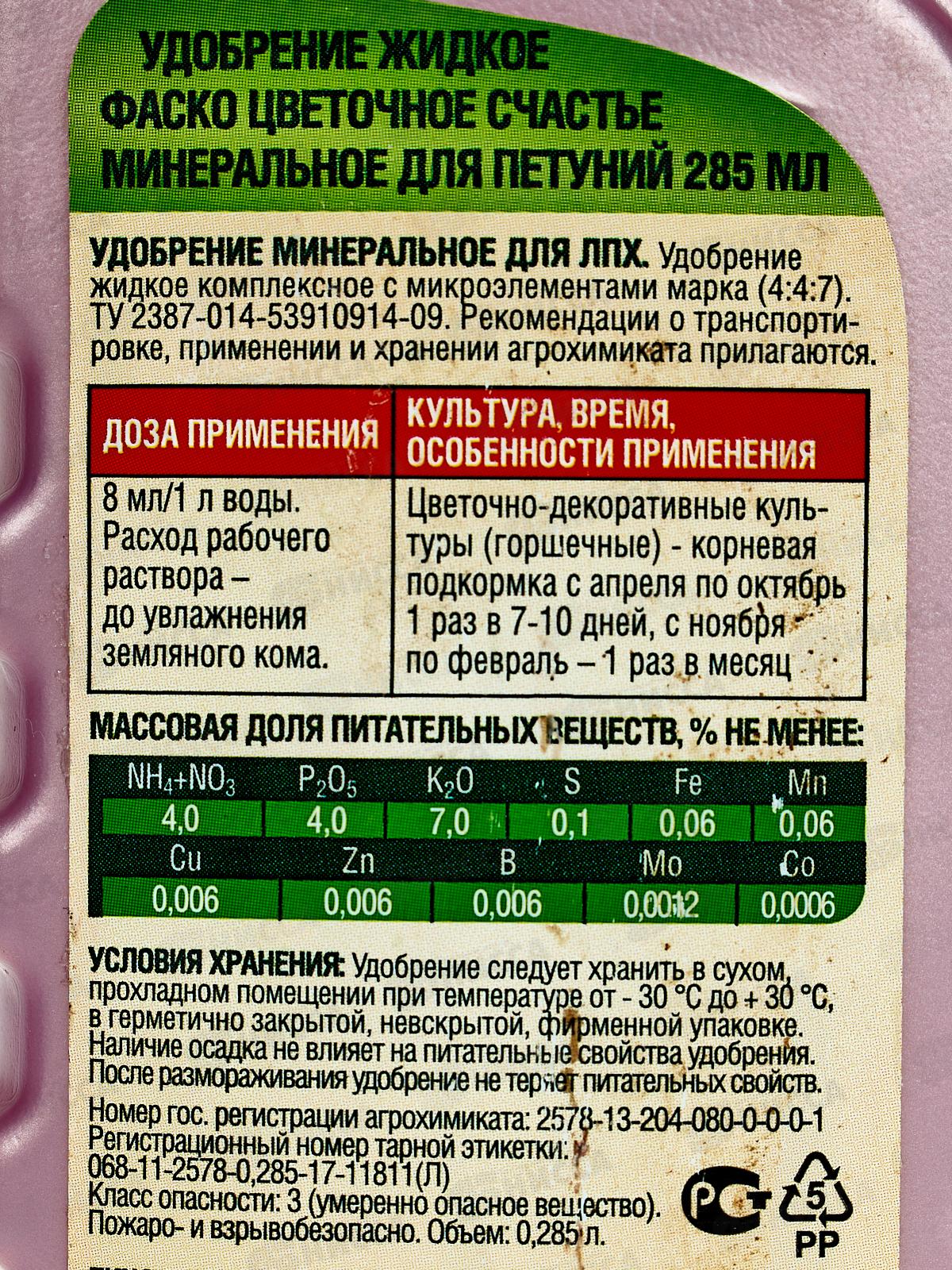 Цветочное счастье жидкое минеральное для Петуний 285мл *9