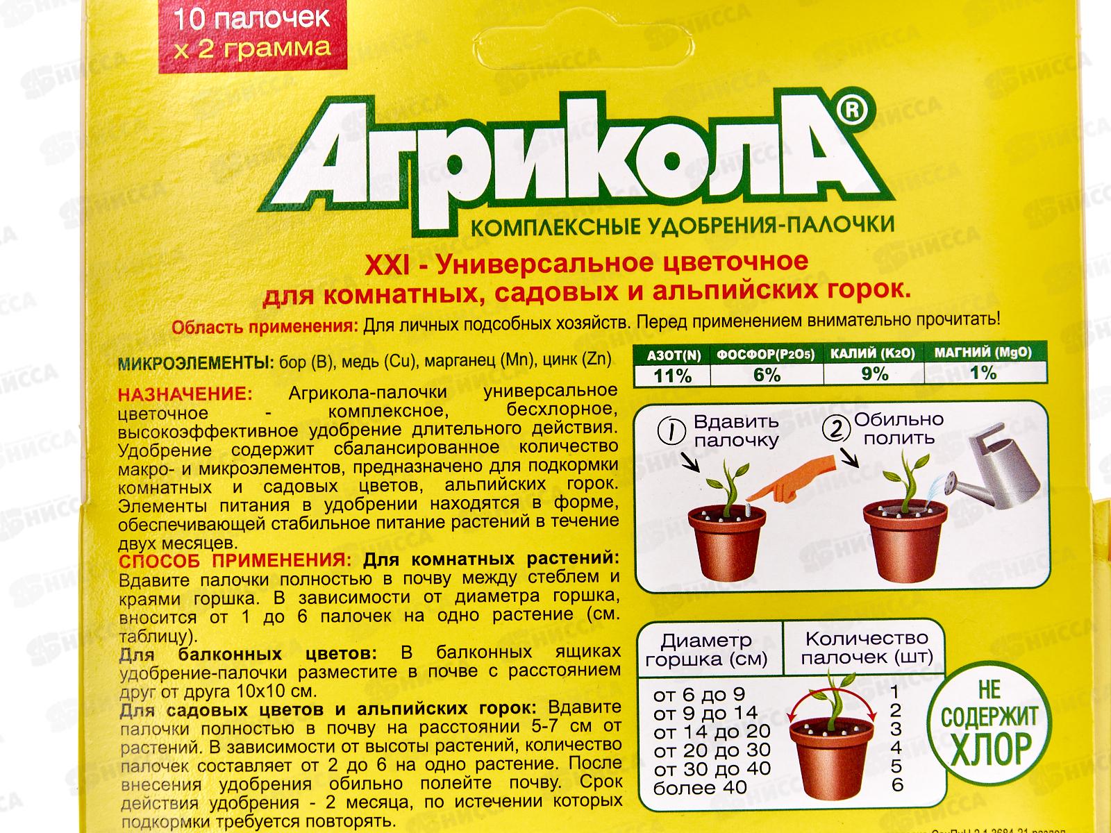АГРИКОЛА-палочки защита, эффективная универсальная для цветов 10палочек *48 224