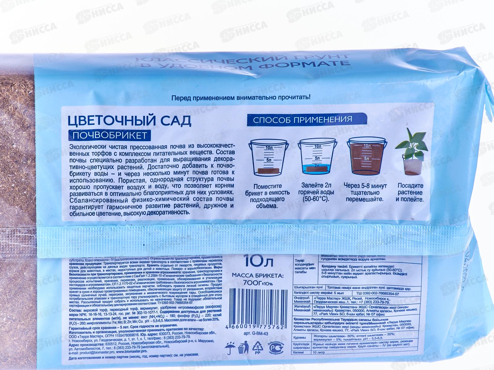 БИО МАСТЕР Почвобрикет Цветочный сад 10л *7