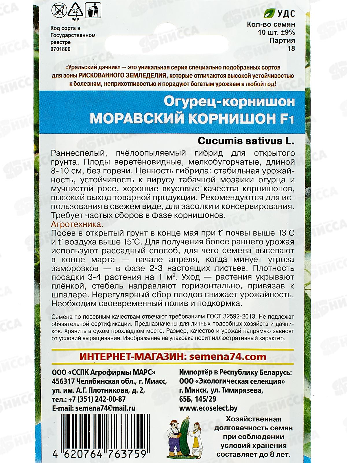 Огурец Моравский Корнишон F1 Евро *10 УрД +