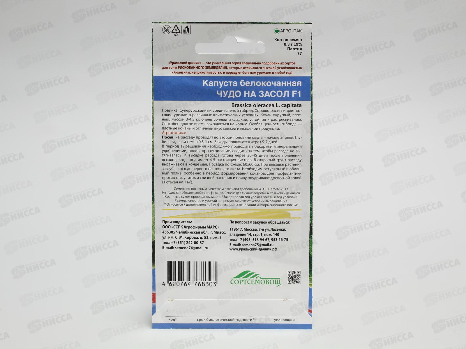 Капуста Чудо на засол белокочанная F1 Евро *10 УрД