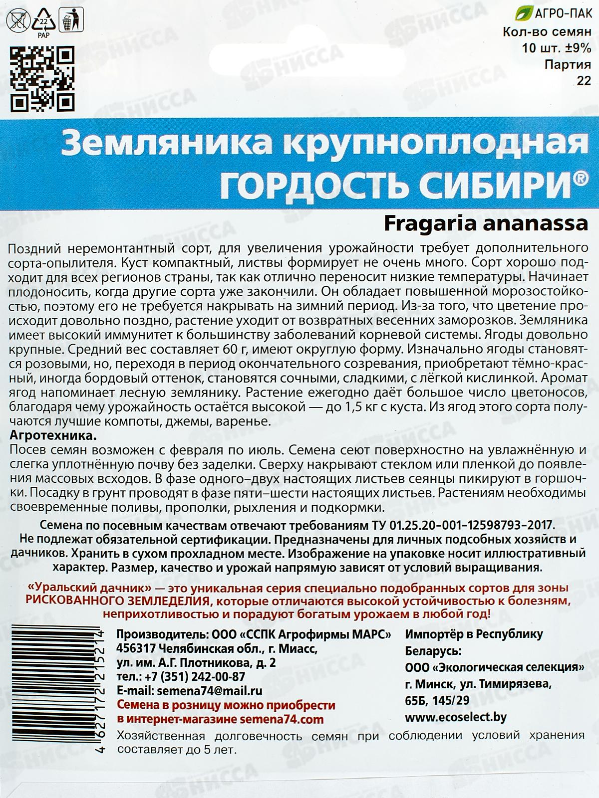 Земляника Гордость Сибири крупноплодная Евро *5 УрД +