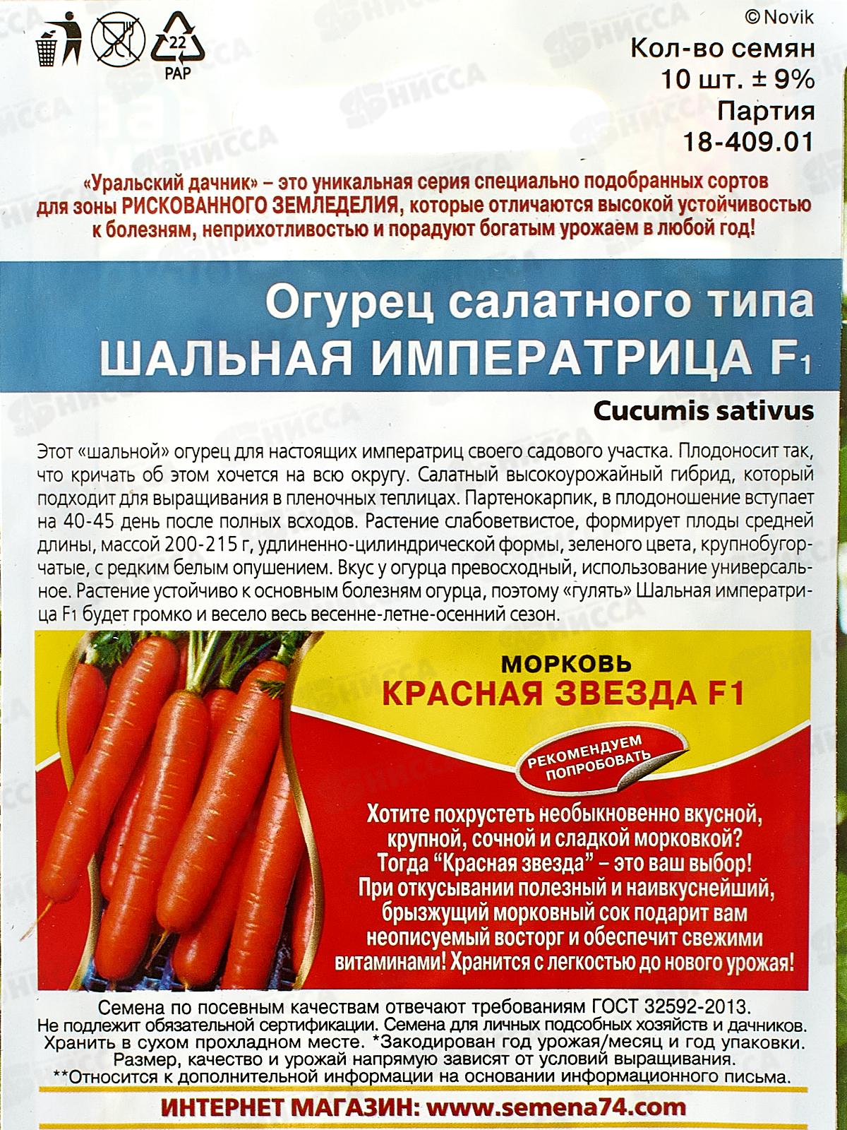 Огурец Шальная императрица - салатного типа F1 Евро *10 УрД +