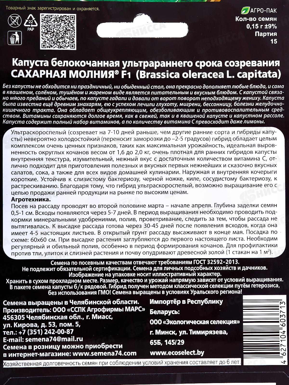 Капуста Сахарная молния б/к F1 Б/Ф Евро *10 УрД!!!