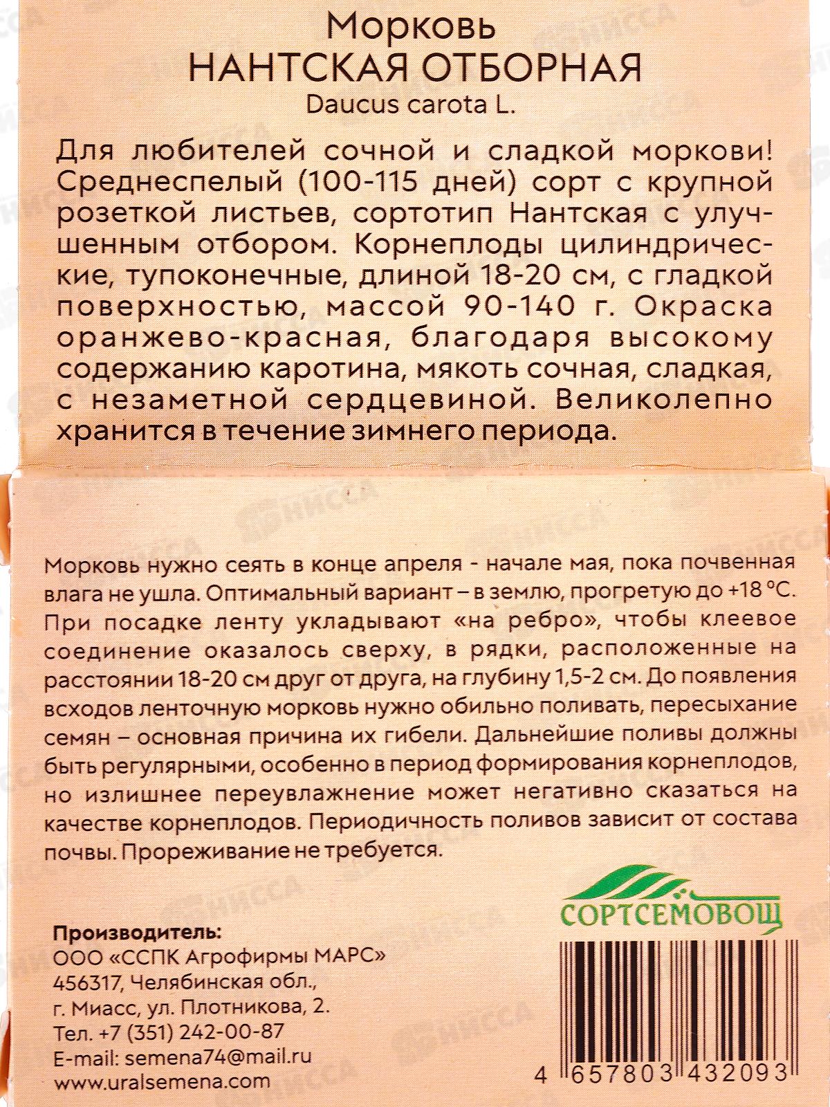 Морковь Нантская отборная лента 8м *20 УрД!!!