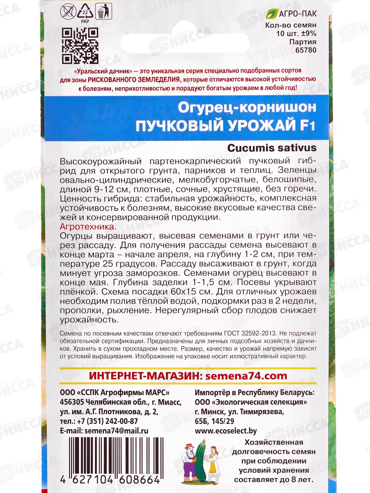 Огурец Пучковый урожай F1 Евро *10 УрД +