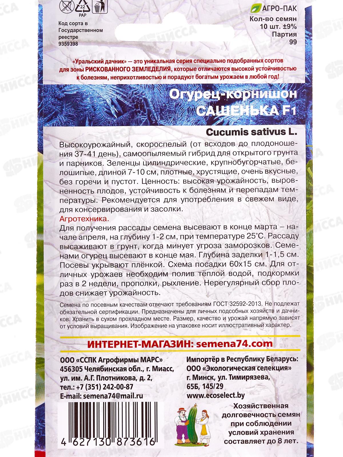 Огурец Сашенька F1 корнишон Евро *10 УрД +
