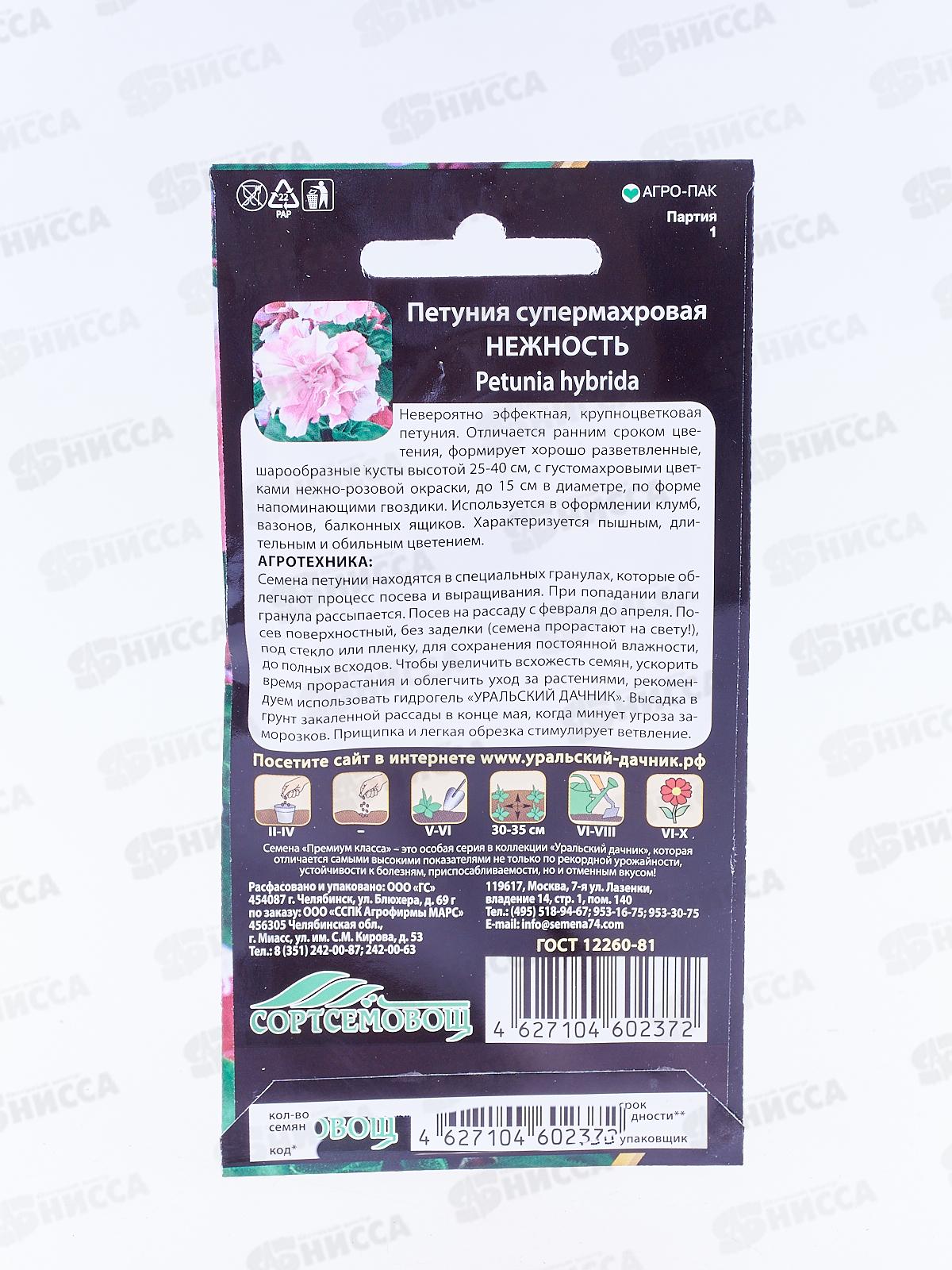 Невероятно эффектная, крупноцветковая петуния. Отличается ранним сроком цветения, формирует хорошо разветвлённые, шарообразные кусты высотой 25-40 см, с густомахровыми цветками нежно-розовой окраски, до 15 см в диаметре, по форме напоминающими гвоздики. Используется в оформлении клумб, вазонов, балконных ящиков. Характеризуется пышным, длительным и обильным цветением. Семена петунии находятся в специальных гранулах, которые облегчают процесс посева и выращивания. При попадании влаги гранула рассыпается. Посев на рассаду с февраля до апреля. Посев поверхностный, без заделки (семена прорастают на свету!), под стекло или плёнку, для сохранения постоянной влажности, до полных всходов. Чтобы увеличить всхожесть семян, ускорить время прорастания и облегчить уход за растениями, рекомендуем использовать гидрогель «Уральский Дачник». Высадка в грунт закалённой рассады в конце мая, когда минует угроза заморозков. Прищипка и легкая обрезка стимулирует ветвление.