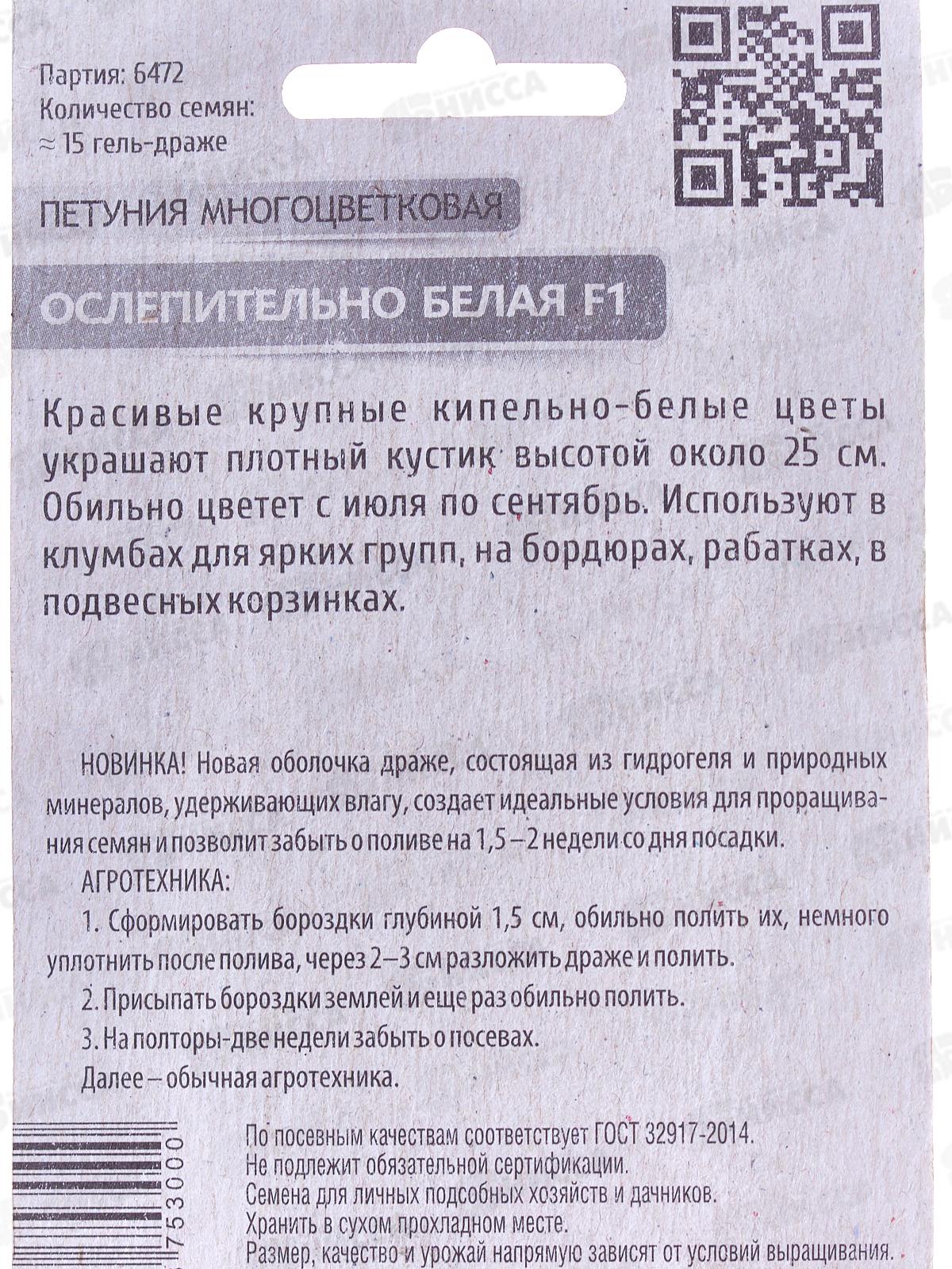 Петуния Ослепительно белая F1 гелевое драже Евро многоцветковая *10 УрД +