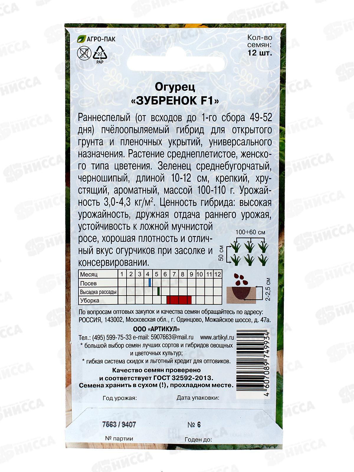 Огурец Зубренок F1 0,34г цв/п *10 АРТ