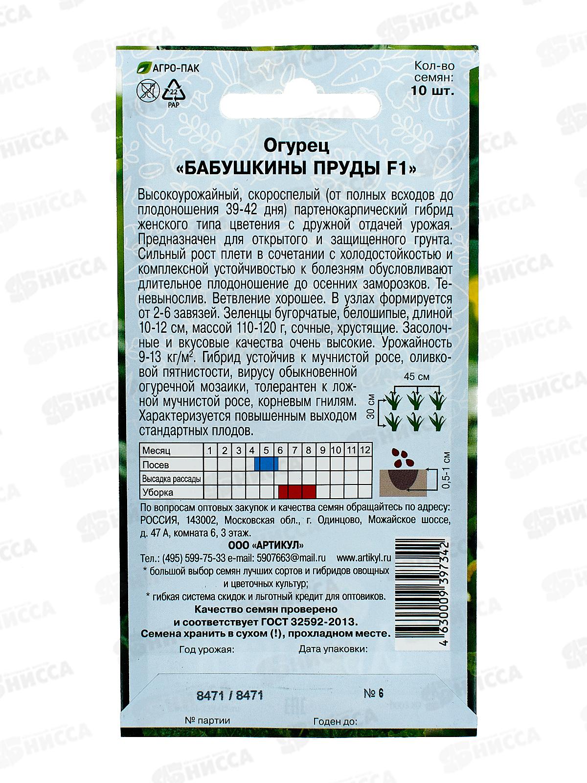 Огурец Бабушкины пруды 10шт цв/п *10 АРТ