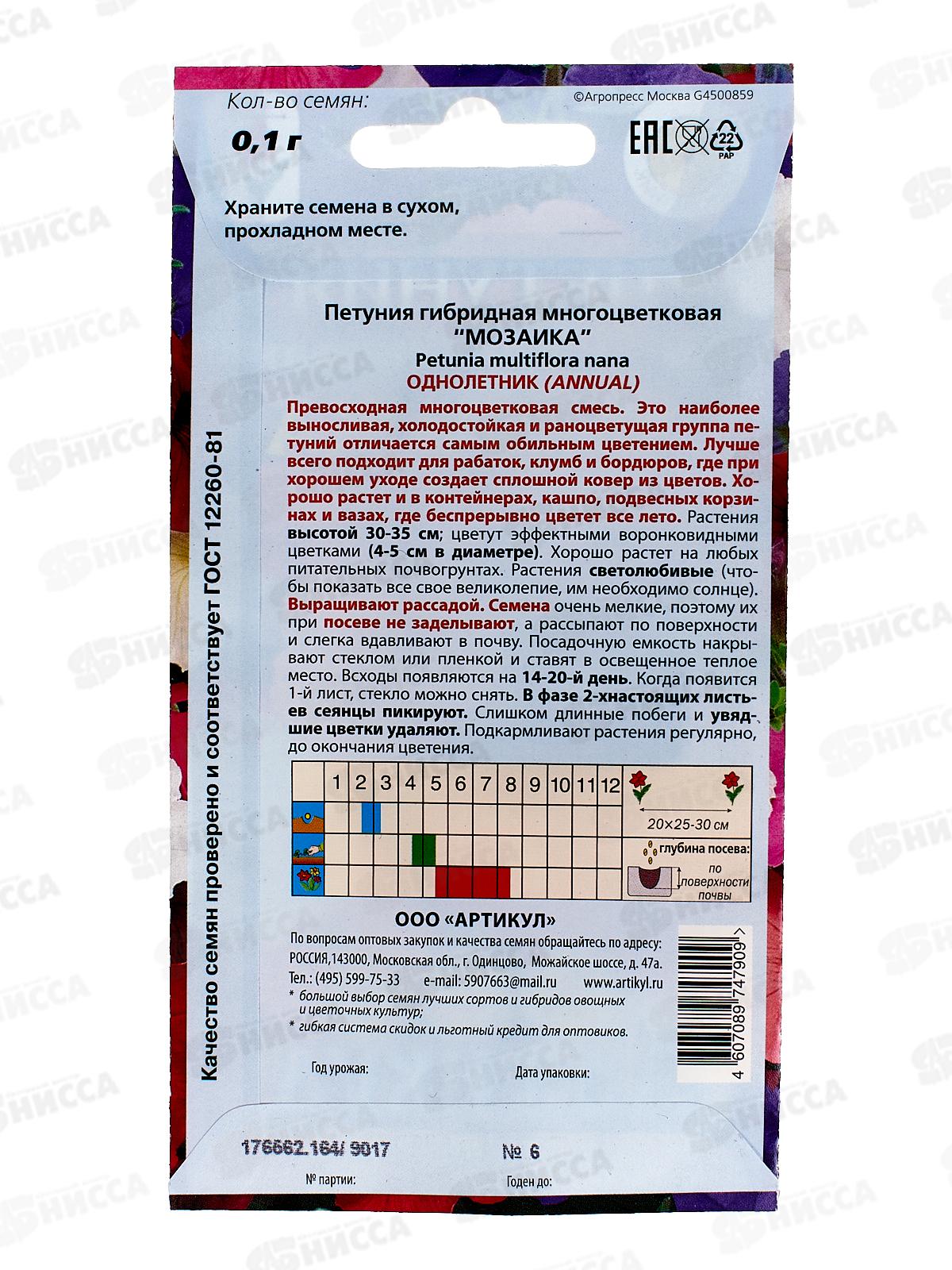 Петуния Мозаика многоцв 0,05г цв/п *10 АРТ +